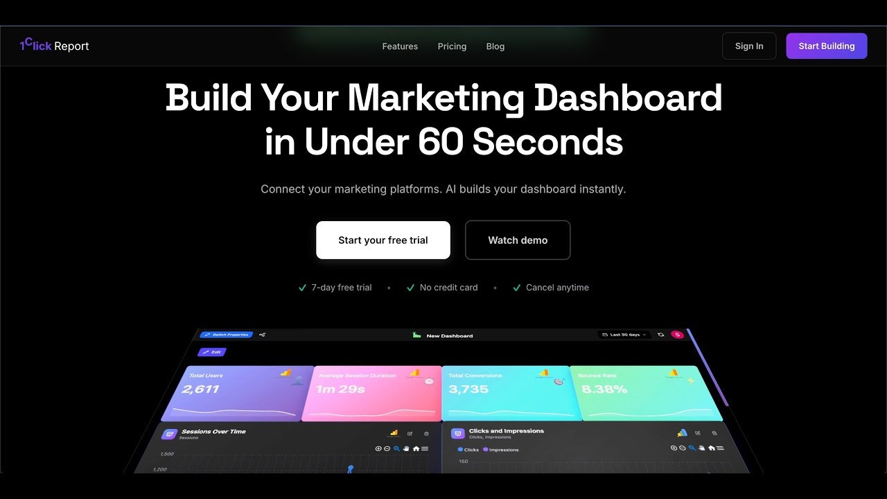 Marketers shouldn't need developers to see their own data. But today you either beg engineering for help, hire analysts, or pay $600/mo for tools that need a PhD to use. We built something simpler -Connect GA4, Meta Ads, Google Ads to 1ClickReport -AI builds your dashboard in 60 seconds - No code. No formulas. No waiting on anyone. -MCP server built-in—connect your data to Claude. Get analyst level insights -White-label sharing for client reports. $25/mo. First 500 users get 55% off forever.
