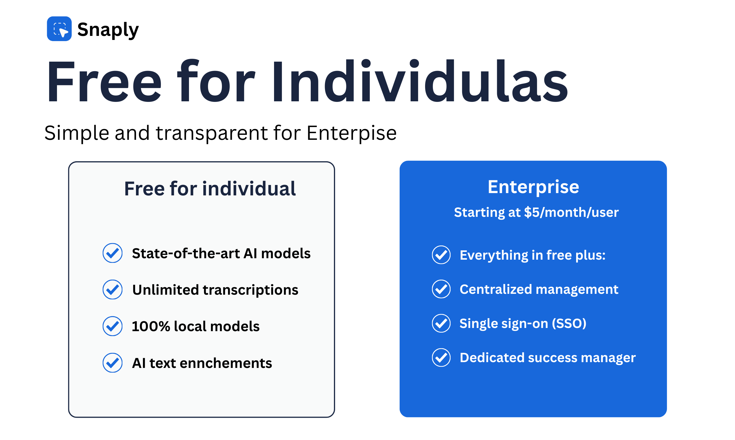 Stop typing and just speak. Snaply brings instant AI dictation to every app and website on your Mac. Because it runs 100% locally on-device, your data remains completely private.π Best of all? Itβs entirely free for individuals.π°