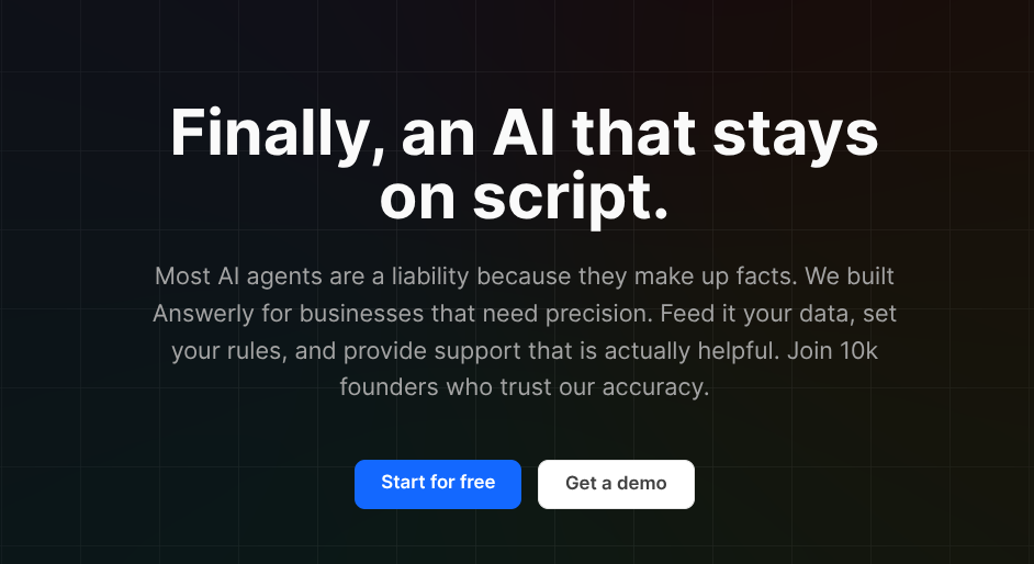 Answerly provides accurate, instant support for your customers by sticking strictly to your data, no hallucinations.