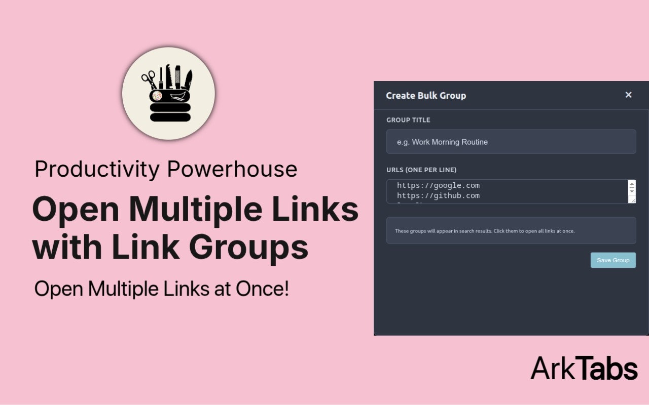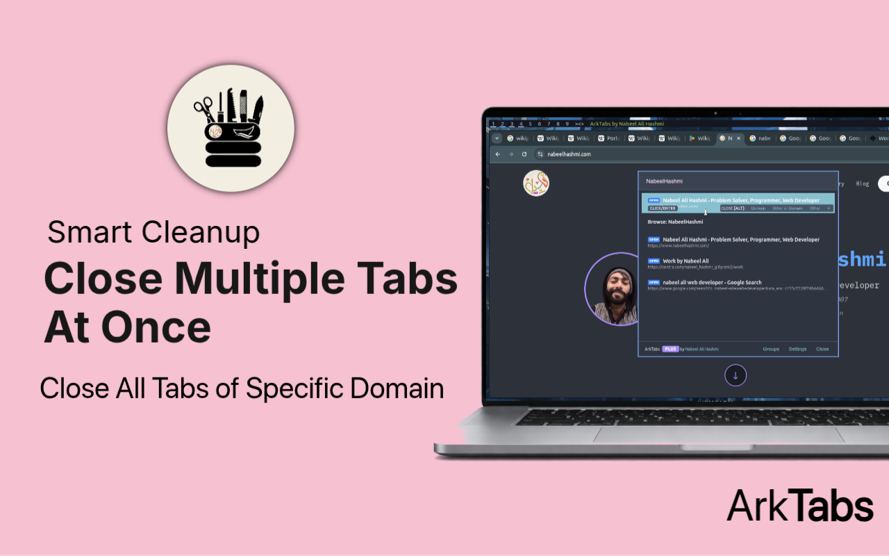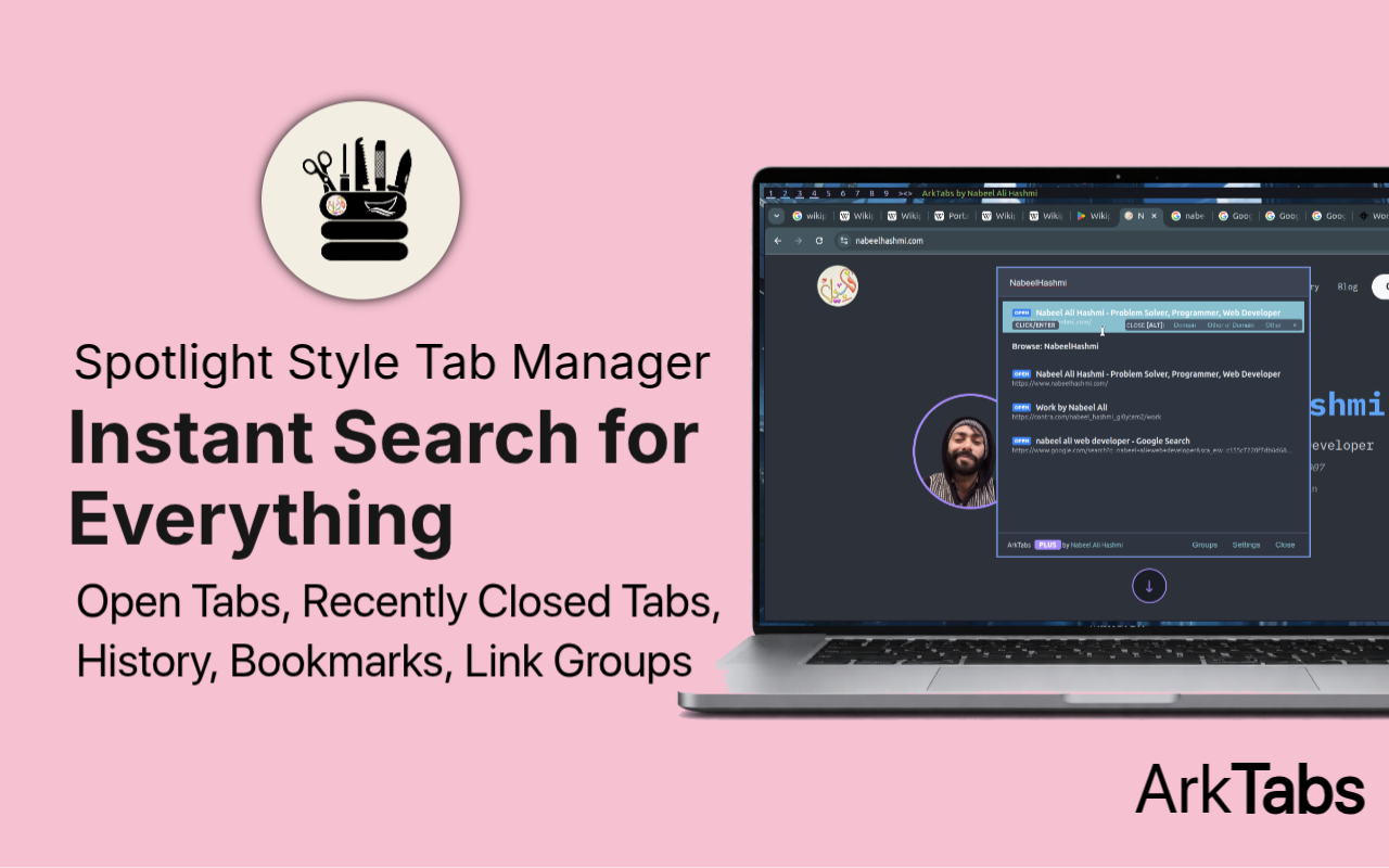 ArkTabs t is lightning-fast tab organizer that turns your browser into a productivity powerhouse. Inspired by launchers like Alfred or Spotlight, it lets you fuzzy-search, group, manage tabs, and even use an omnibar for web searches and direct navigation in seconds. Press Alt + P to access everything. Open tabs, bookmarks, history, recently closed sessions, and custom workspaces are all in one unified interface. Useful for everyone, casual users, researchers, programmers.