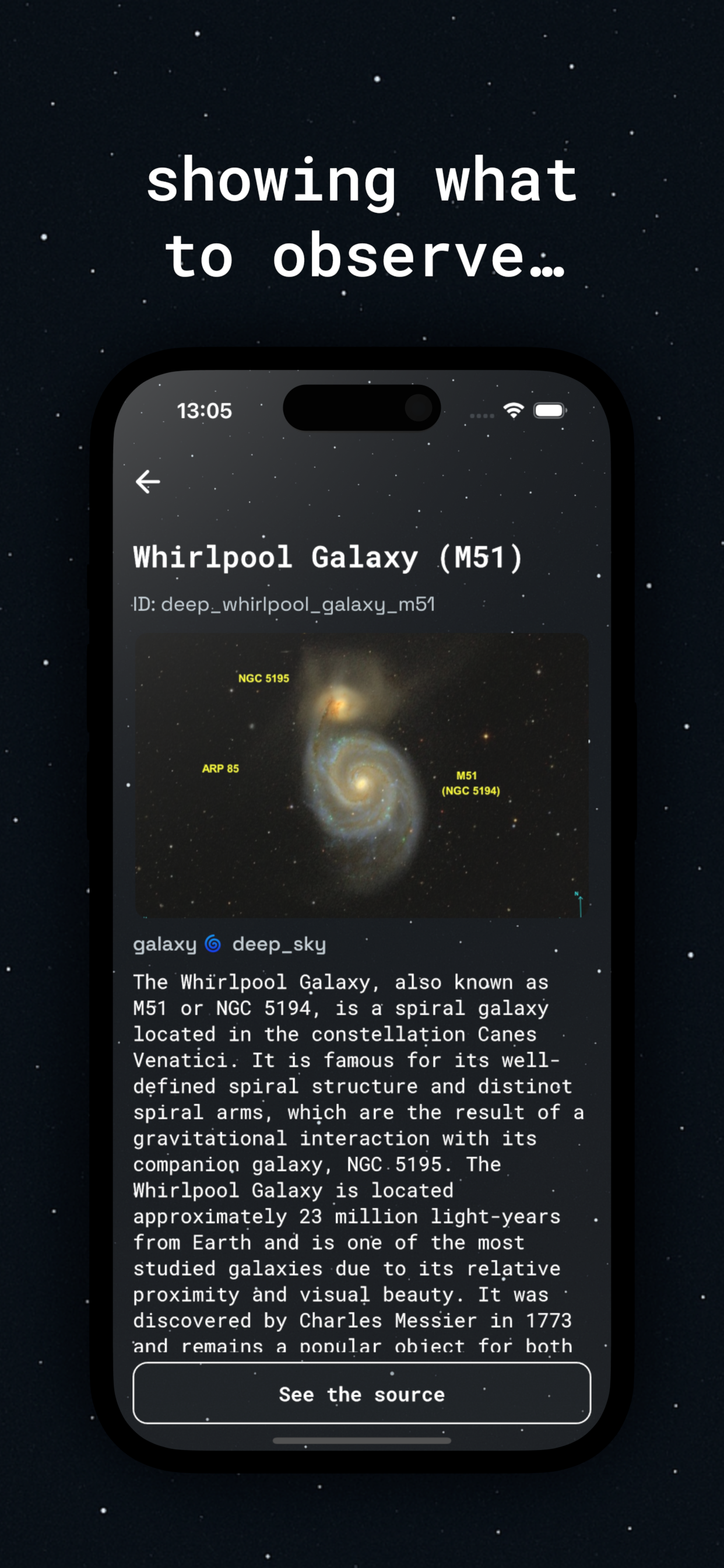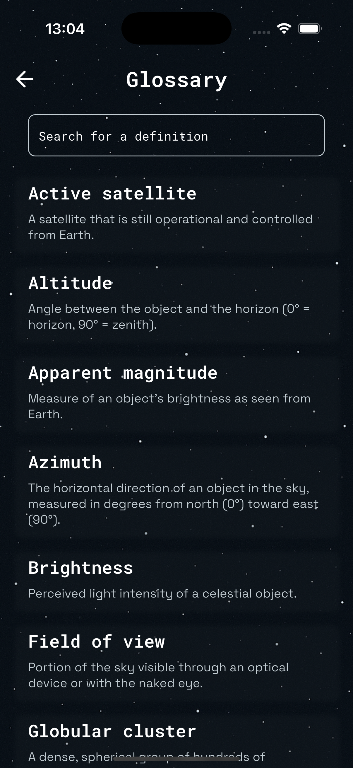 AstroAlert is your personal sky-watch assistant. It tells you exactly which satellites, planets, comets, and deep-sky objects will pass right above your location in the next 24 hours — including spectacular zenith events above 70°. Powered by NASA/JPL data, it combines real-time calculations with educational content, a full astronomy glossary, and detailed object sheets. The sky above you, revealed with precision.