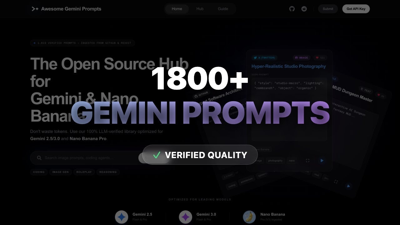 The first dedicated open-source prompt library for Google Gemini. Finding professional prompts for complex tasks was a pain—formatting was messy and scattered everywhere. So I built this to fix it. We automatically scraped & cleaned 1,100+ prompts using a custom LLM pipeline (Qwen + Gemini) to ensure quality everyday. It's completely free, open-source, and so cool to use.