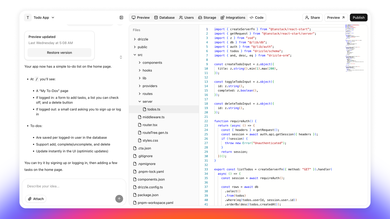 Beautiful.dev lets you go from an idea to a full-stack app by chatting with AI. It generates the app, sets up the database and infrastructure, and deploys it for you. You can iterate and make changes through conversation.