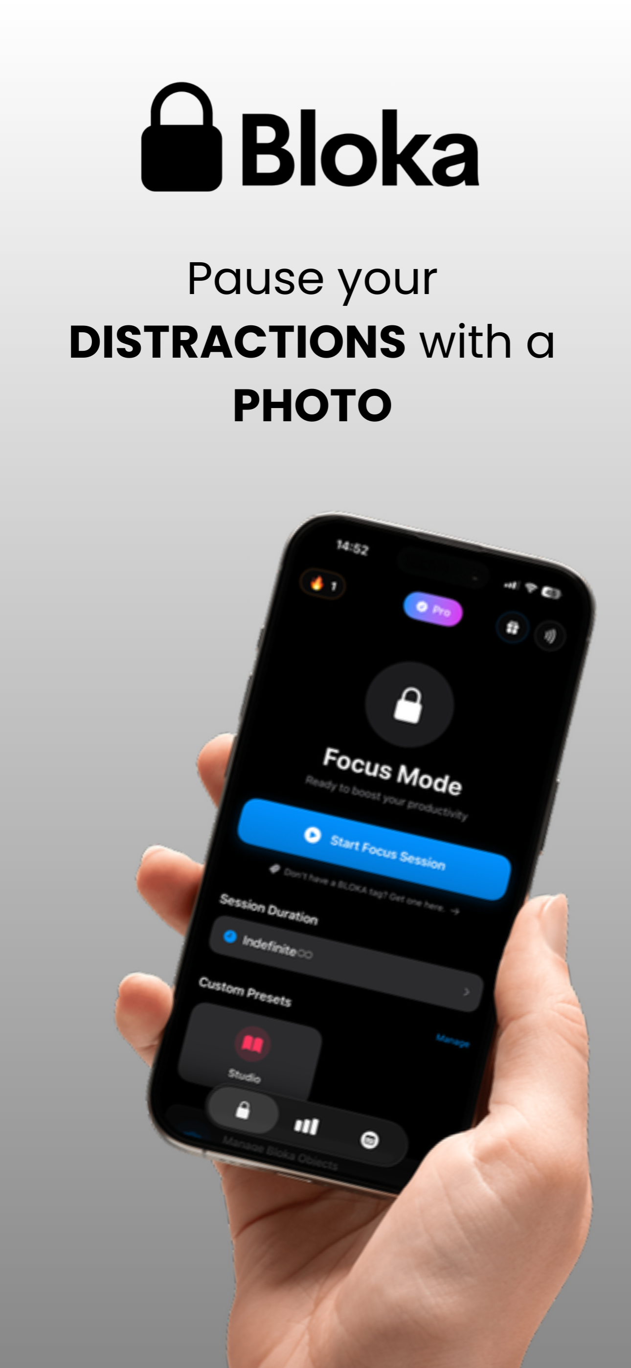 Bloka uses AI object recognition to turn everyday items into focus triggers. Point your camera at your laptop, coffee mug, or a book — Bloka recognizes it and instantly blocks apps like Instagram, TikTok, and YouTube. Scan again to unlock. Unlike blockers that rely on willpower or expensive hardware, Bloka creates a physical ritual with zero setup. No NFC tags to buy, no devices to charge. Just pick any object and start focusing. Your environment becomes your accountability partner.