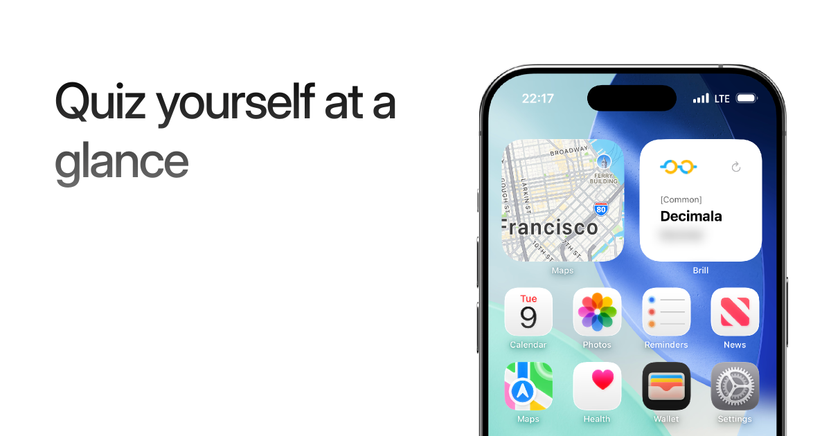 Brill is a vocabulary-first language learning app built for real life. It doesn’t teach through lessons or exercises. Instead, Brill helps you build vocabulary through repeated exposure — on your Home Screen and Lock Screen. It supports 15 languages and focuses on useful, real-world words. Customize what you see, add your own vocabulary, filter by topic, and blur translations for active recall. Lightweight and distraction-free, Brill turns everyday phone glances into steady language progress.