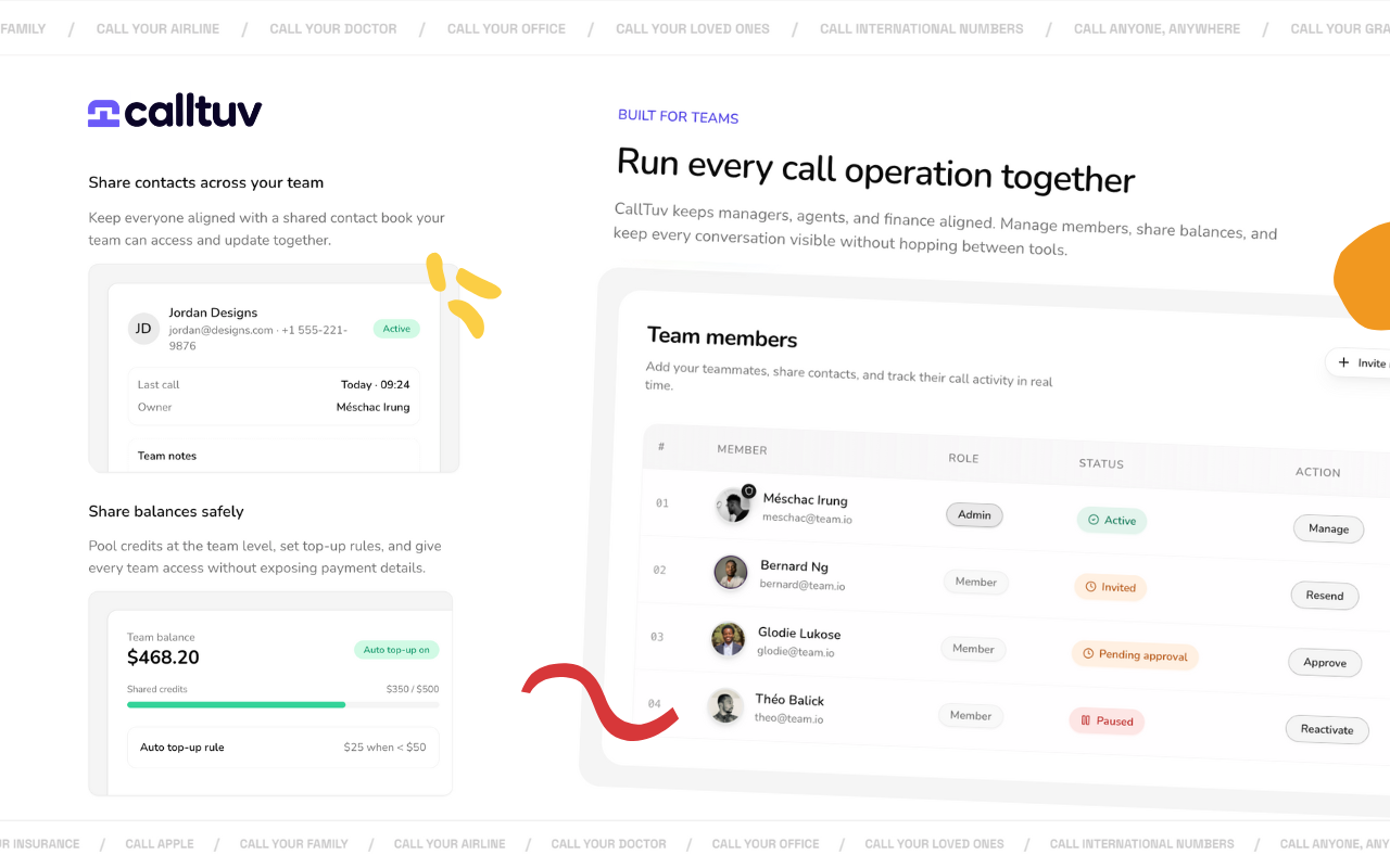 Make cheap international online calls to 200+ countries from your browser with CallTuv. Crystal clear quality, low rates, and no hidden fees. Try it now!