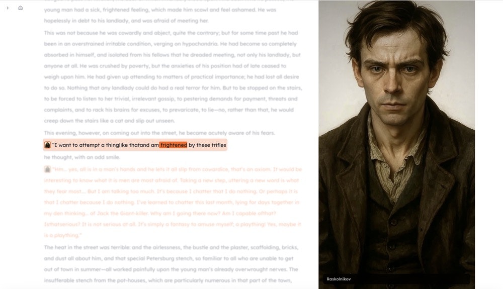 CastReader is a AI Text to Speech Reader that visualizes characters & dialogue. Get matched voices, animated scenes, and character maps for immersive reading