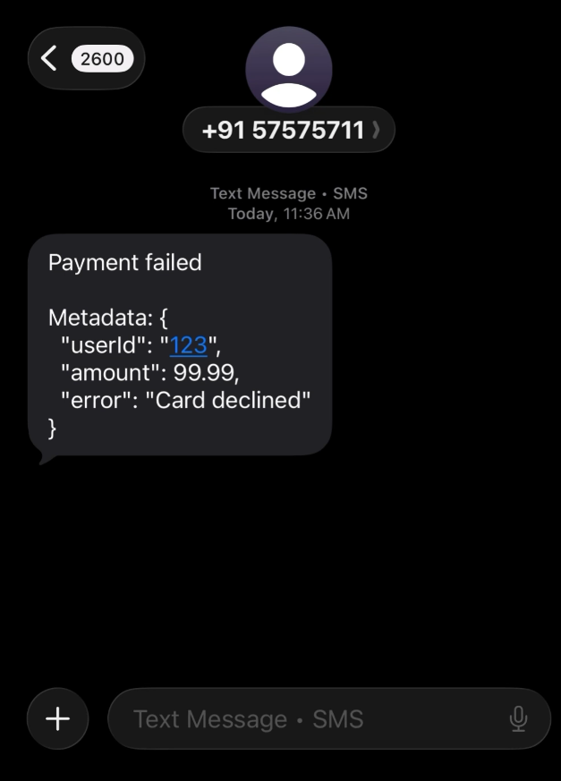 Stop anxiously checking dashboards. console.text() sends you an SMS when specific code paths execute. One line of code. No complex setup. Perfect for solo devs who want simple production alerts without the overhead of Sentry or PagerDuty.
