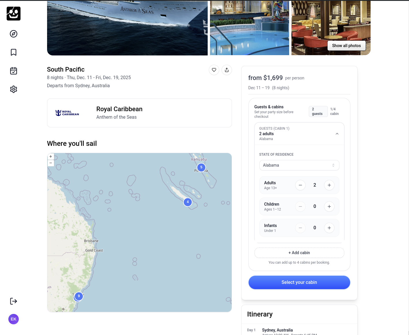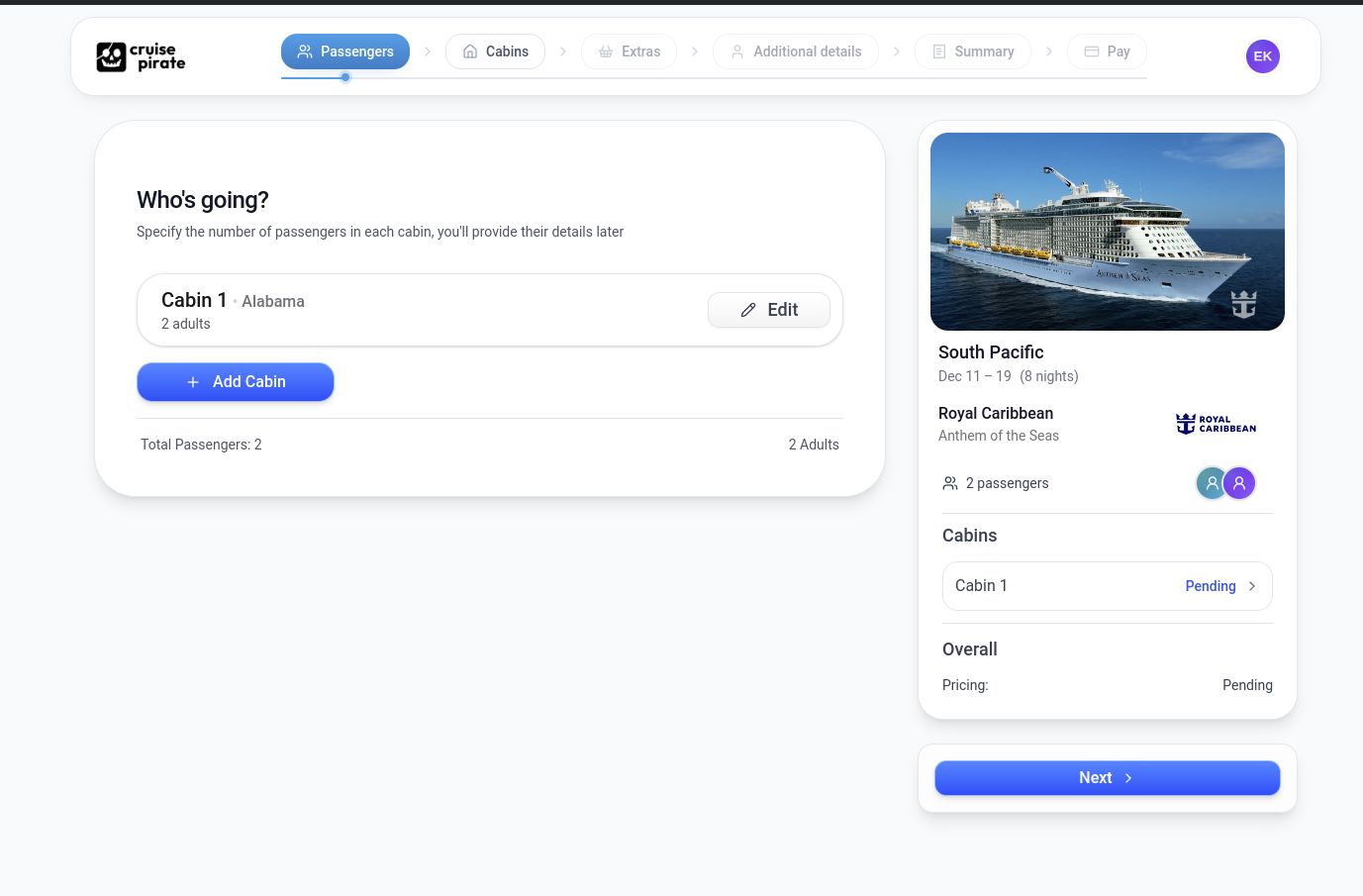 Cruise Pirate is a full stack AI travel agency. Today, 70% of all cruises are still sold through human travel agents. Cruise Pirate AI powered search and clean checkout UI aims to make it easier for the end consumer to directly book their cruise.