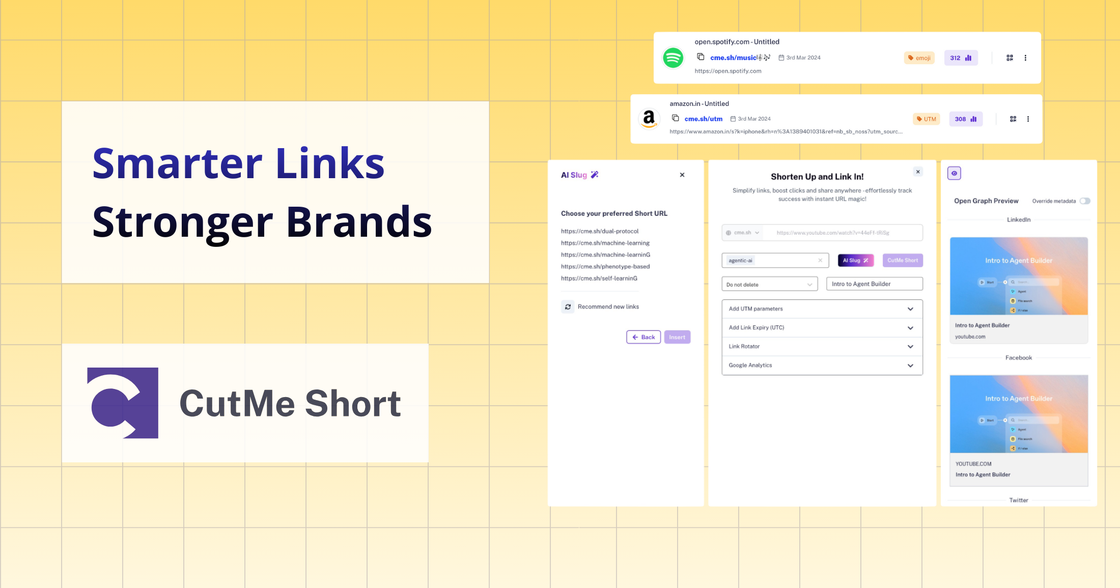 CutMe Short is a smart URL management platform built for growing brands. Create branded short links, dynamic UTMs, QR codes, and link rotators — all backed by powerful analytics and GA4 tracking. Streamline your campaigns, stay organized, and turn every click into actionable insights.