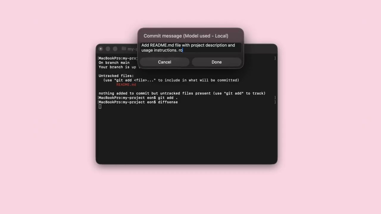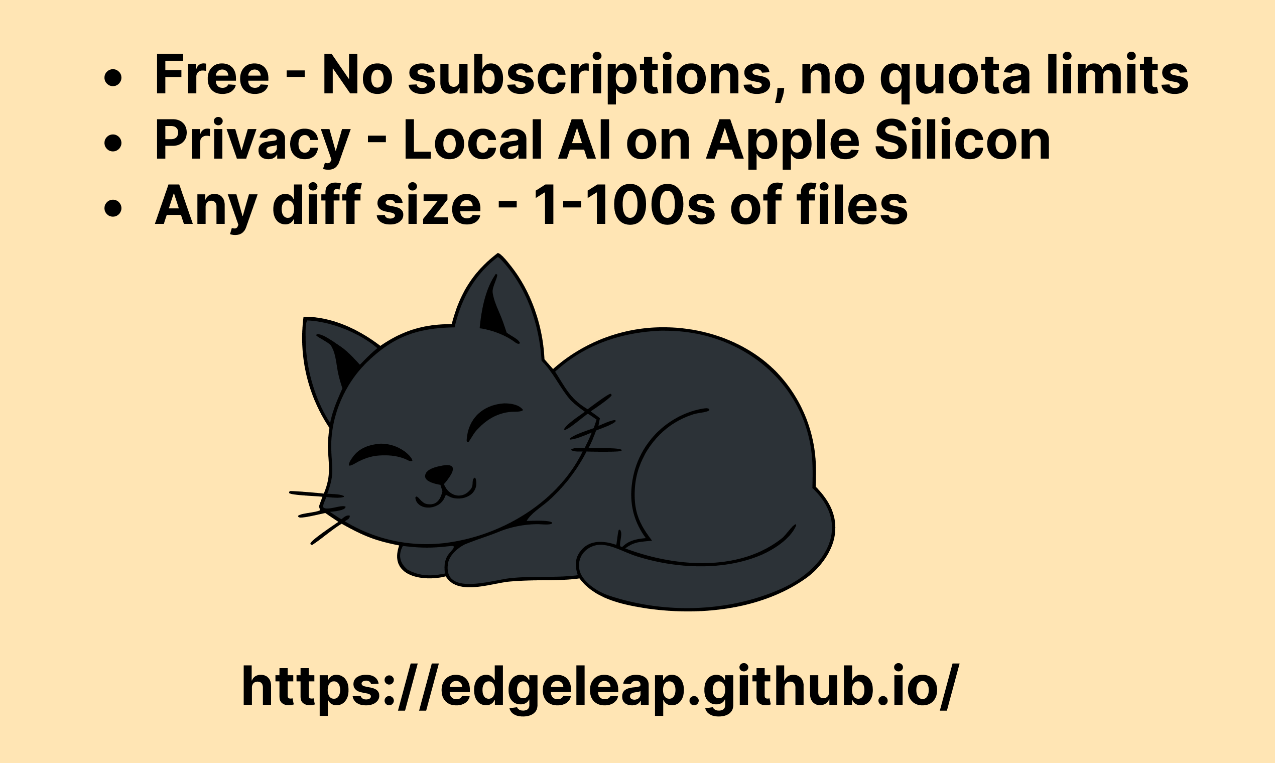 DiffSense uses the native AFM 3B model on Apple Silicon to generate git commit messages for free. It runs locally with zero latency, ensuring your code stays private. Features customizable message styles and powerful alias macros.