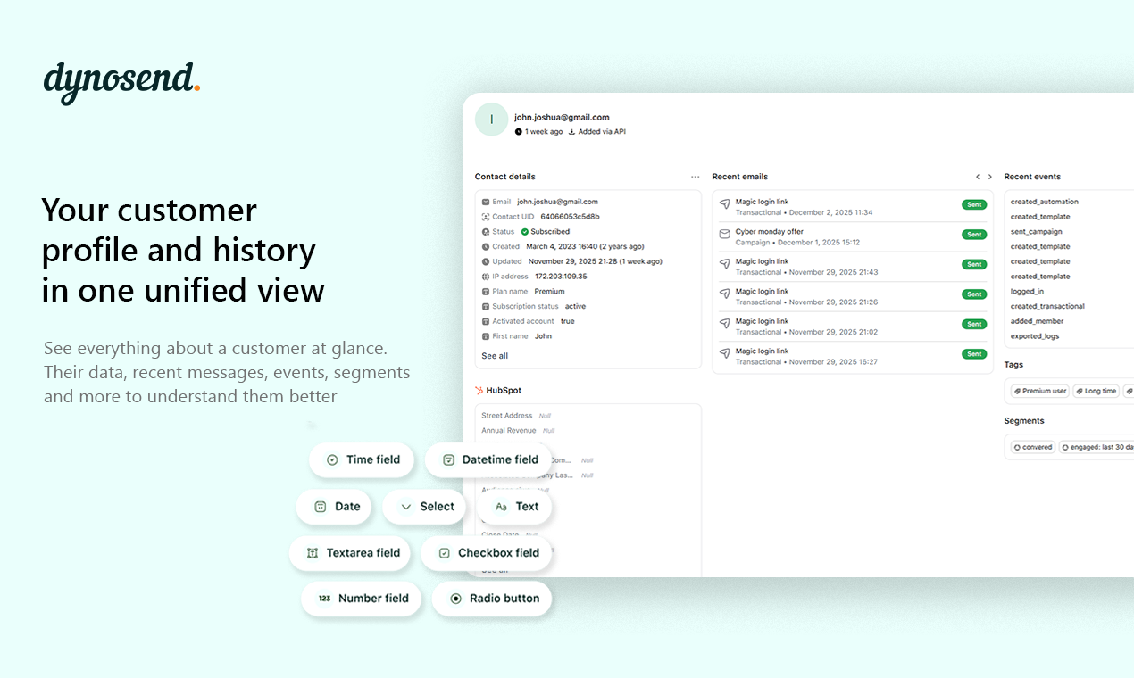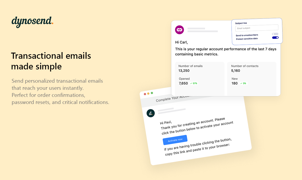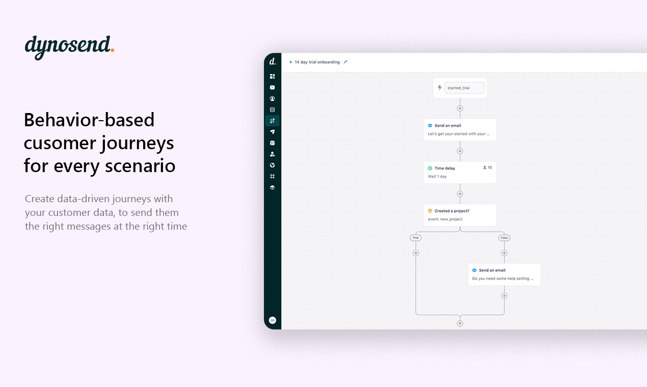 Dynosend is THE ONE customer engagement platform for SaaS founders who want to grow. Automate data-driven journeys, send reliable transactional emails, and turn webforms into growth engines, all in one place.