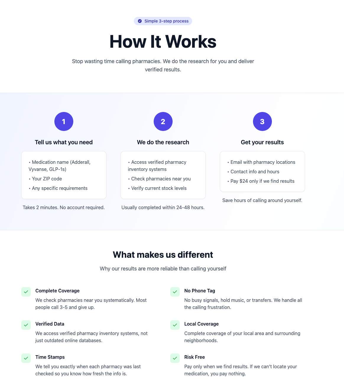 Find My Script is a concierge-style service that helps patients locate prescription medications that are difficult to find due to shortages or inconsistent pharmacy inventory. Instead of calling dozens of pharmacies, users submit a request and our team checks local and regional pharmacies on their behalf. When availability is found, users are notified so they can fill their prescription faster. Find My Script is especially helpful for medications affected by ongoing shortages, including ADHD treatments and GLP-1 medications. Our goal is to save patients time, reduce stress, and make the prescription process easier during periods of limited supply.