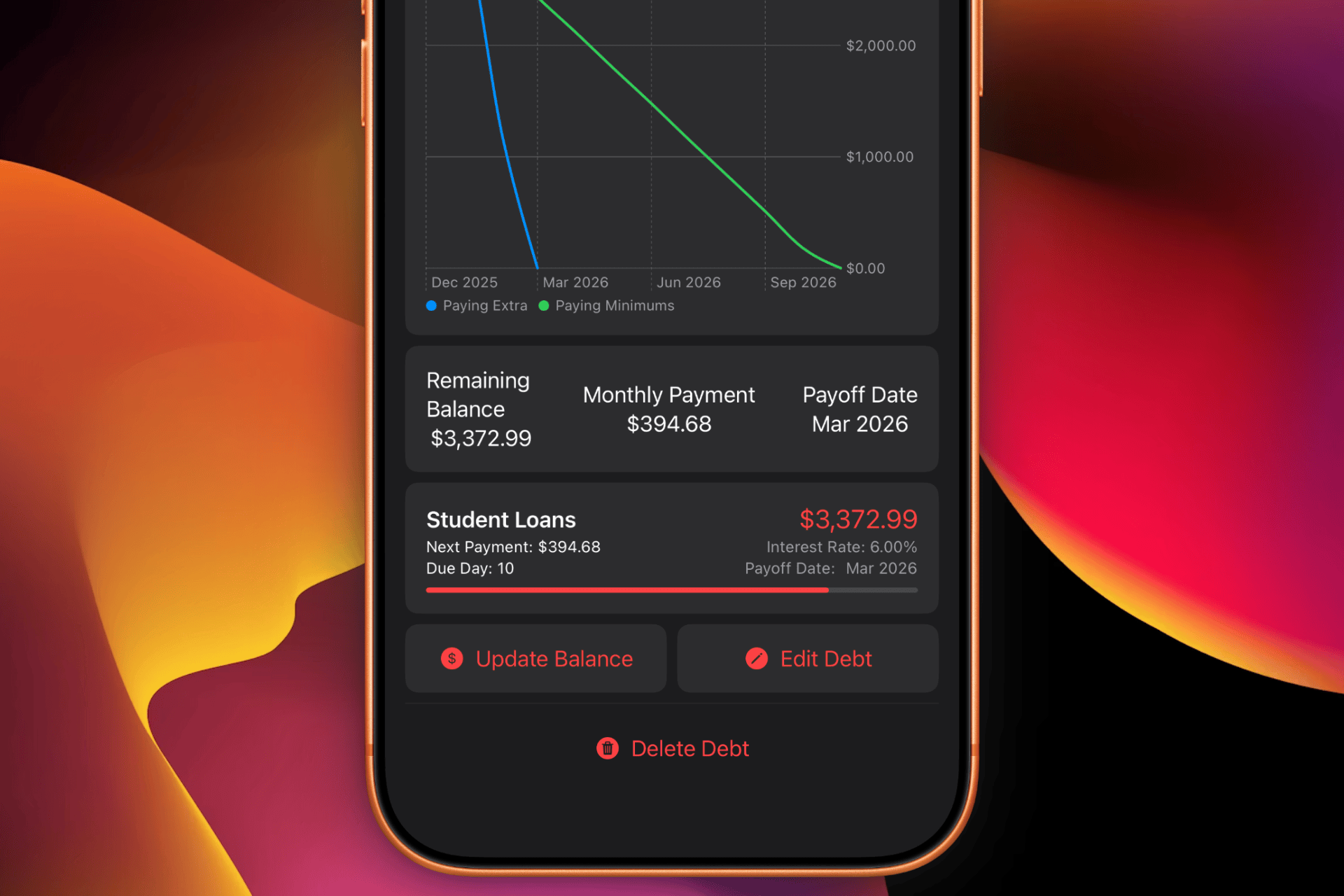 Visualize your debt payoff journey with satisfying burn animations. Plan payment schedules, track progress, and achieve debt freedom with complete privacy.