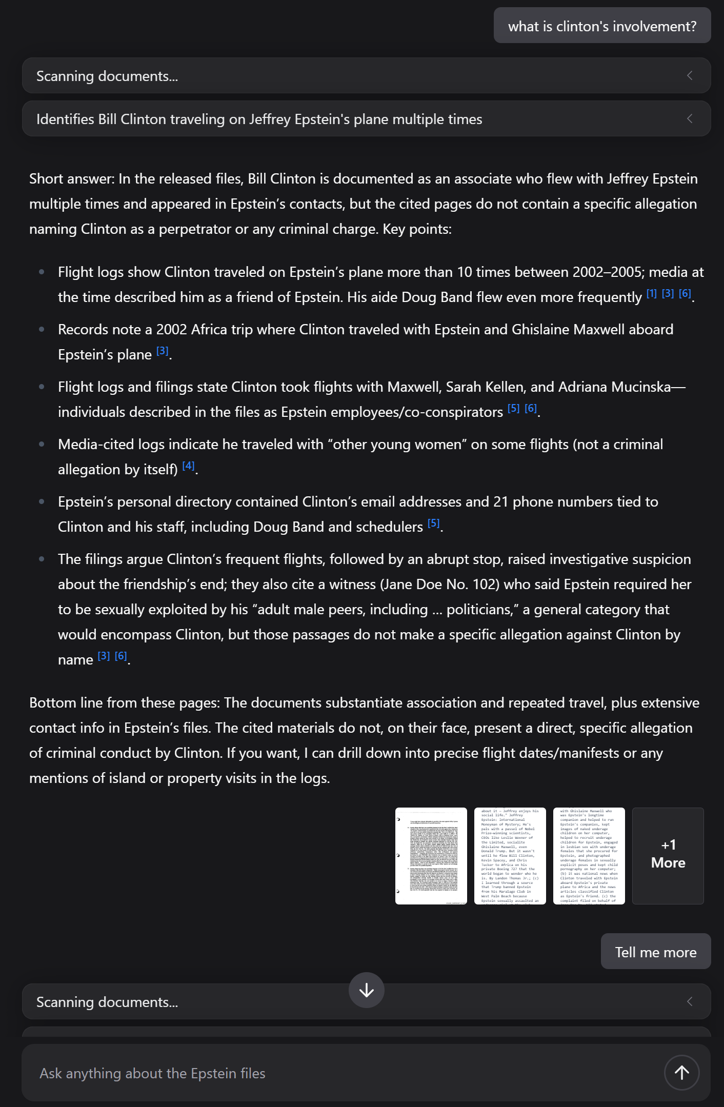 I connected the Epstein files to a deep learning AI researcher. As many of you know, the Epstein files were released a few weeks ago, with over 20,000 individual text and image documents. When I saw this, I thought it would be fun to purchase a domain and speedrun a meme website that connects the Epstein files to an AI agent built specifically for searching the files and finding information.