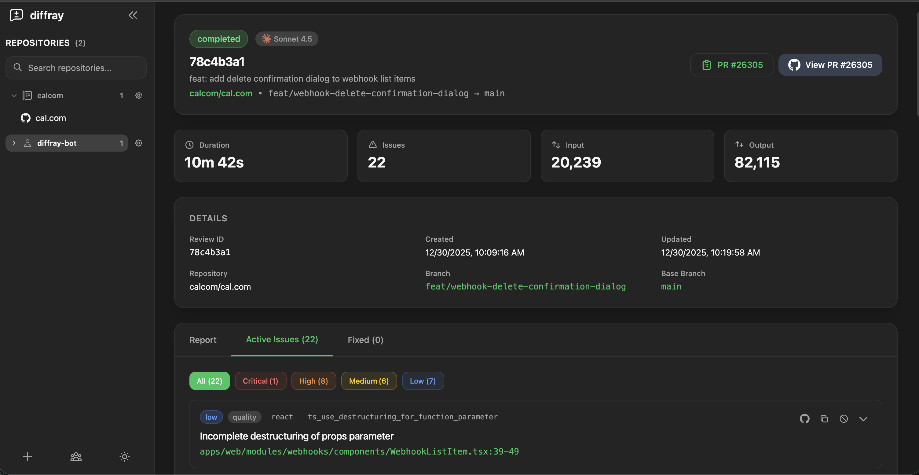 Traditional AI code review tools use one generic model for everything and flood your PRs with noise. diffray takes a different approach: 30+ specialized agents, each focused on one thing (security, performance, bugs, best practices, SEO, and more). The result? 87% fewer false positives and 3x more real issues caught. Teams report cutting PR review time from 45 minutes to 12 minutes per week. Key features: * Multi-agent architecture: each agent is an expert in its domain * Codebase-aware: understands your repo context, not just the diff * Clean comments: no emoji spam, just actionable feedback * Works with GitHub; easy setup in minutes Free for open source. 14-day free trial for private repos.
