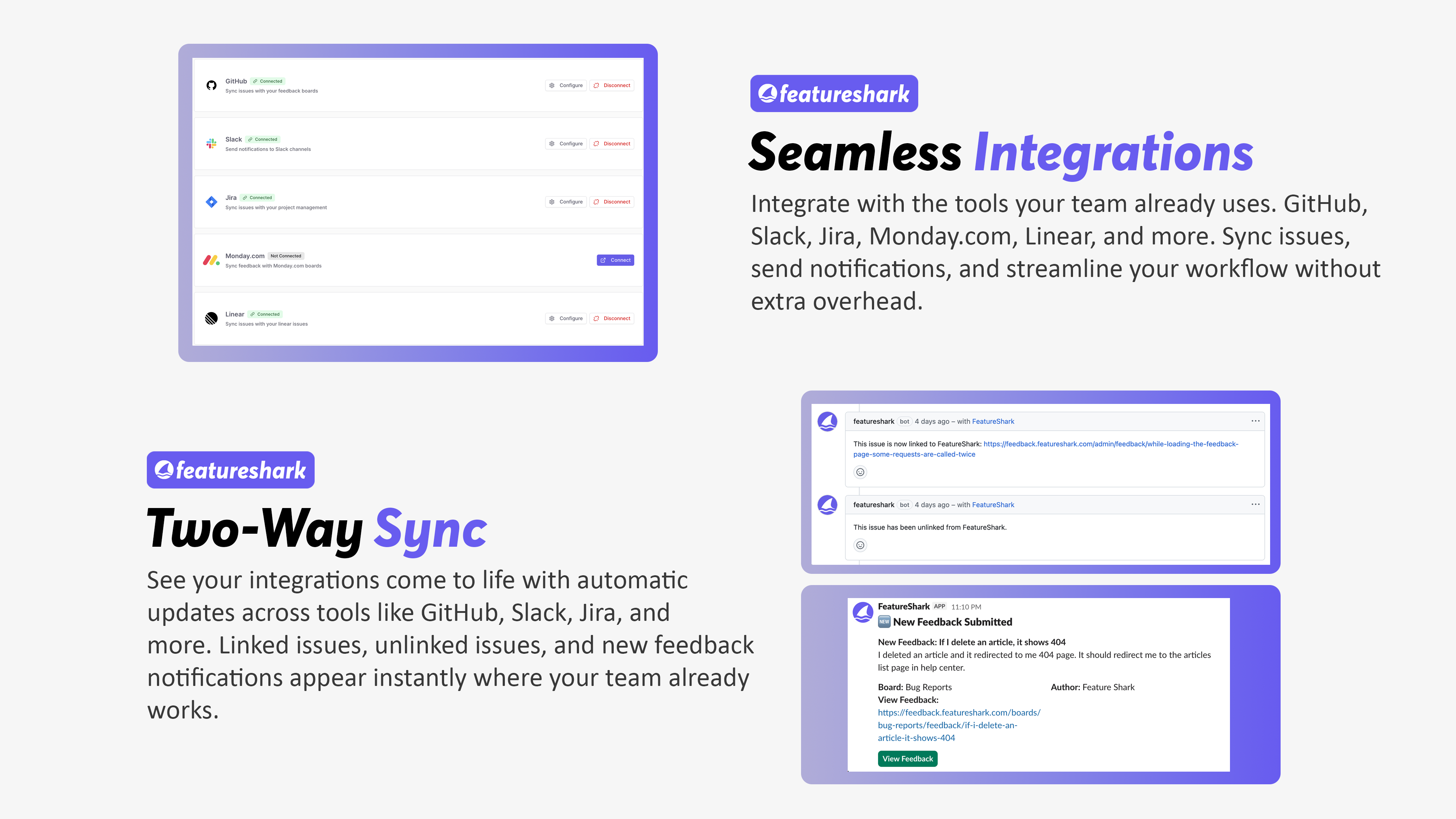 FeatureShark collects feedback from every channel, kills duplicates automatically, lets users upvote what matters most (just like Productboard or Canny) and lets you prioritize with real frameworks like RICE, Kano, WSJF, Value vs Effort. Two-way sync with Slack, Jira, GitHub, Linear, Monday.com, and more coming. One lightweight widget gives your users feedback submission, live chat, surveys, and a help center. No more spreadsheet chaos or endless debates. Just clarity on what to build next.