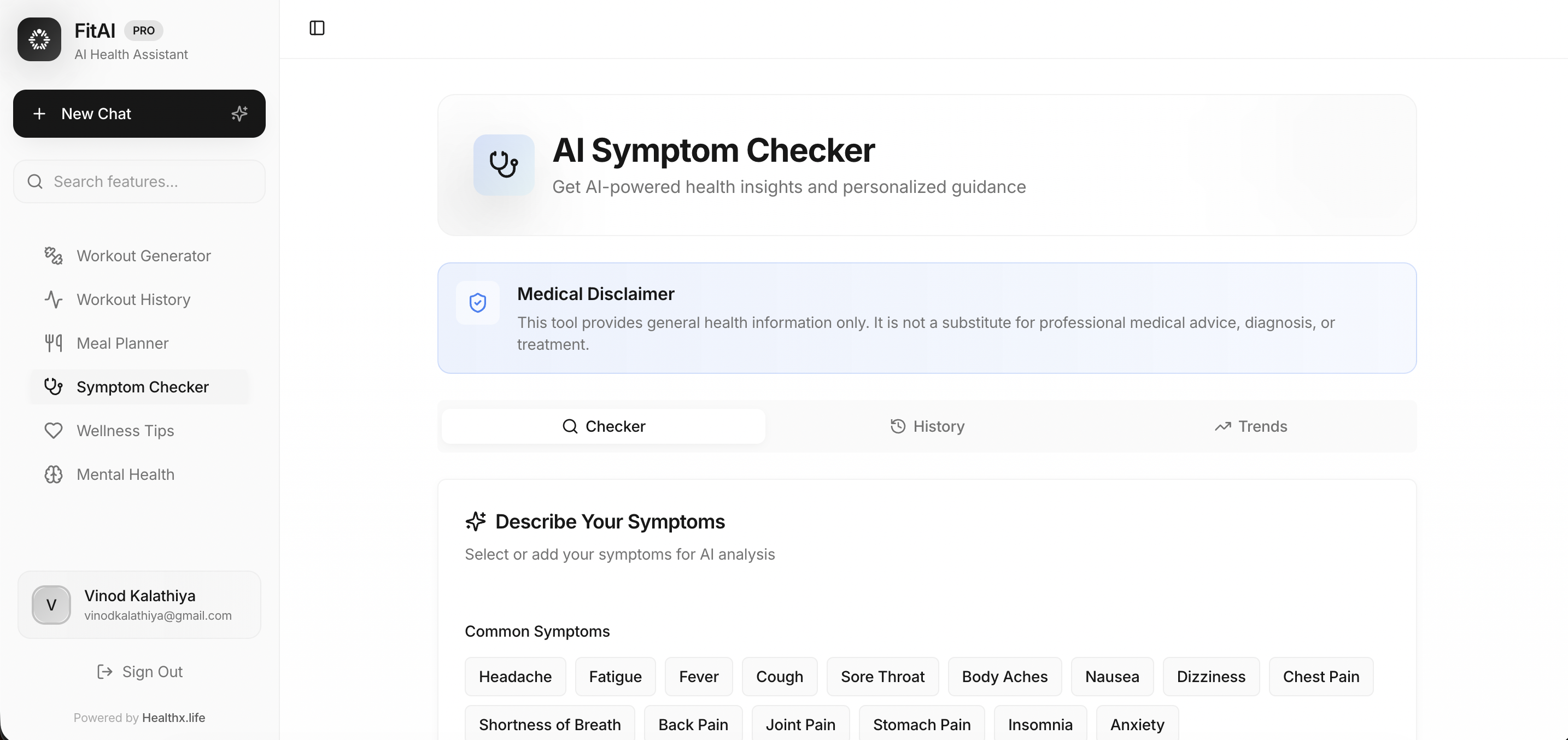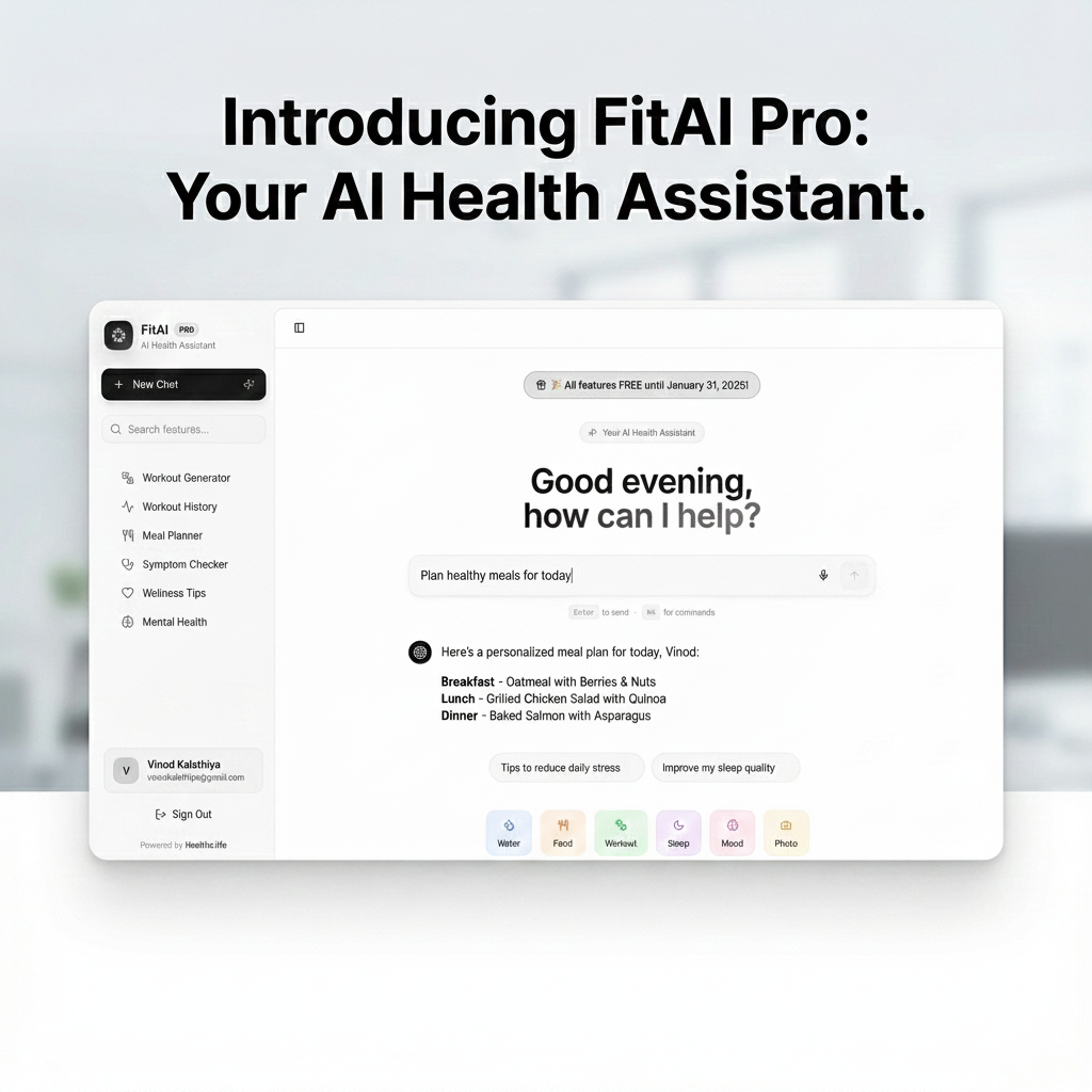 Transform your health journey with FitAI - your intelligent fitness companion. Get personalized AI workout plans, smart meal recommendations, symptom analysis, mental wellness support, and expert health guidance. Start your free fitness transformation today.