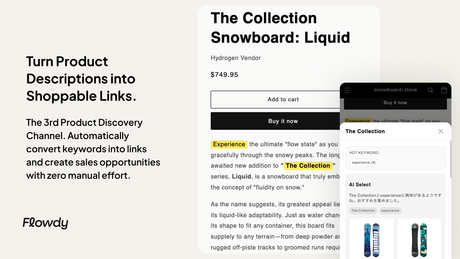 Turn content into shoppable links. Flowdy uses AI to highlight keywords in your blogs and descriptions automatically. Most readers leave without buying. Flowdy fixes this. When clicked, instant product recommendations appear—boosting conversion without page reloads. Why Flowdy? ⚡ Zero Friction: Shop seamlessly while reading 🧠 Neural Flow: Personalized suggestions based on browsing history 📈 Monetize Content: Track revenue per keyword Turn readers into buyers today.