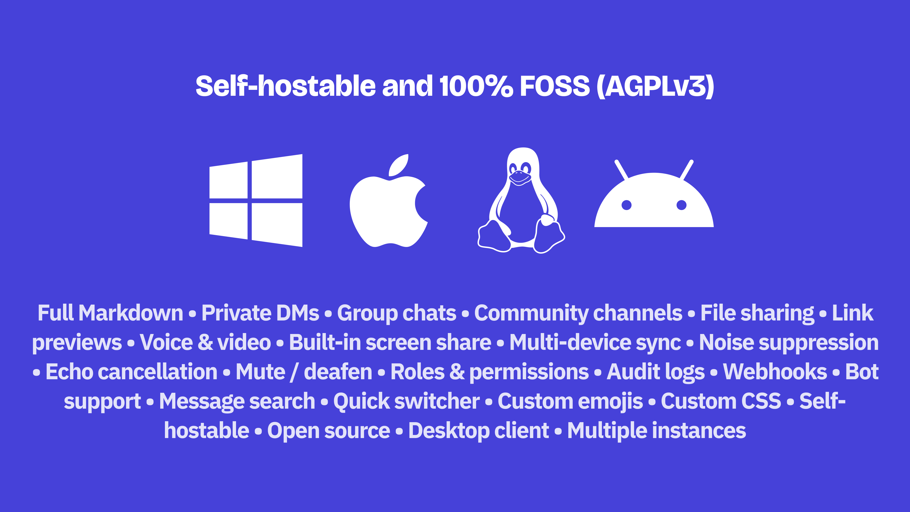 An open-source, independent instant messaging and VoIP platform. Built for friends, groups, and communities.