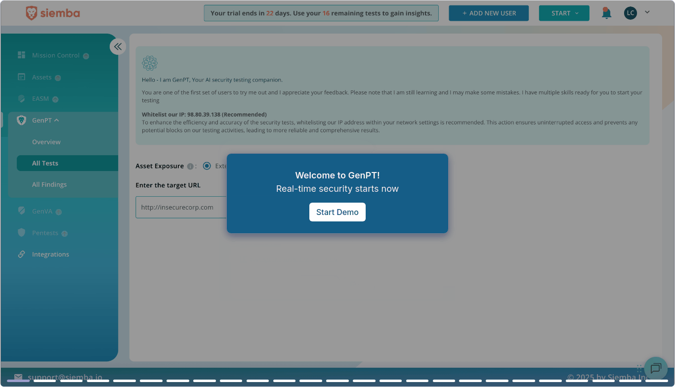 GenPT is an AI-native Dynamic Application Security Testing (DAST) platform that helps you find vulnerabilities in modern web apps at the click of a button. Simply enter an application URL and GenPT fingerprints your tech stack, maps assets, and runs over 30,000 automated tests to uncover exploitable issues. Findings are validated and prioritized to reduce false positives, delivering clear, actionable insights teams can fix quickly.