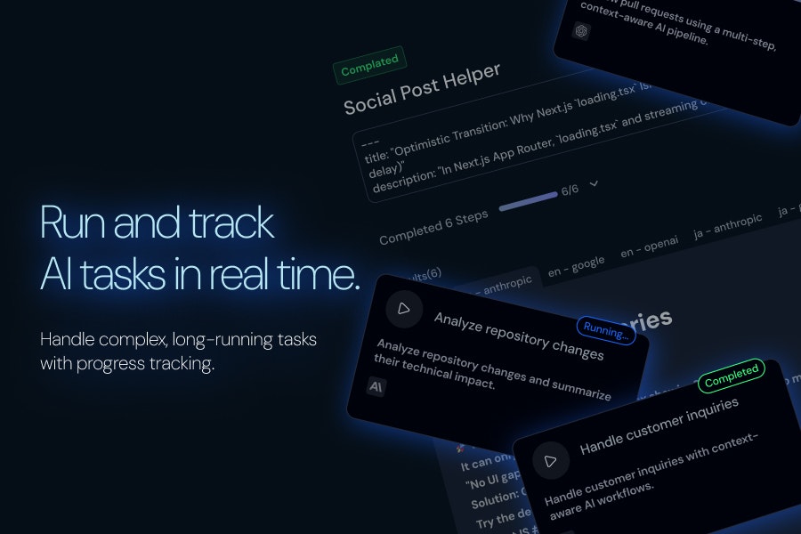 Built to design and run AI workflows that actually complete. Zero infra setup—just build and run. Handle complex, long-running tasks with a visual node editor and real-time tracking. Combine models from multiple providers in one canvas.
