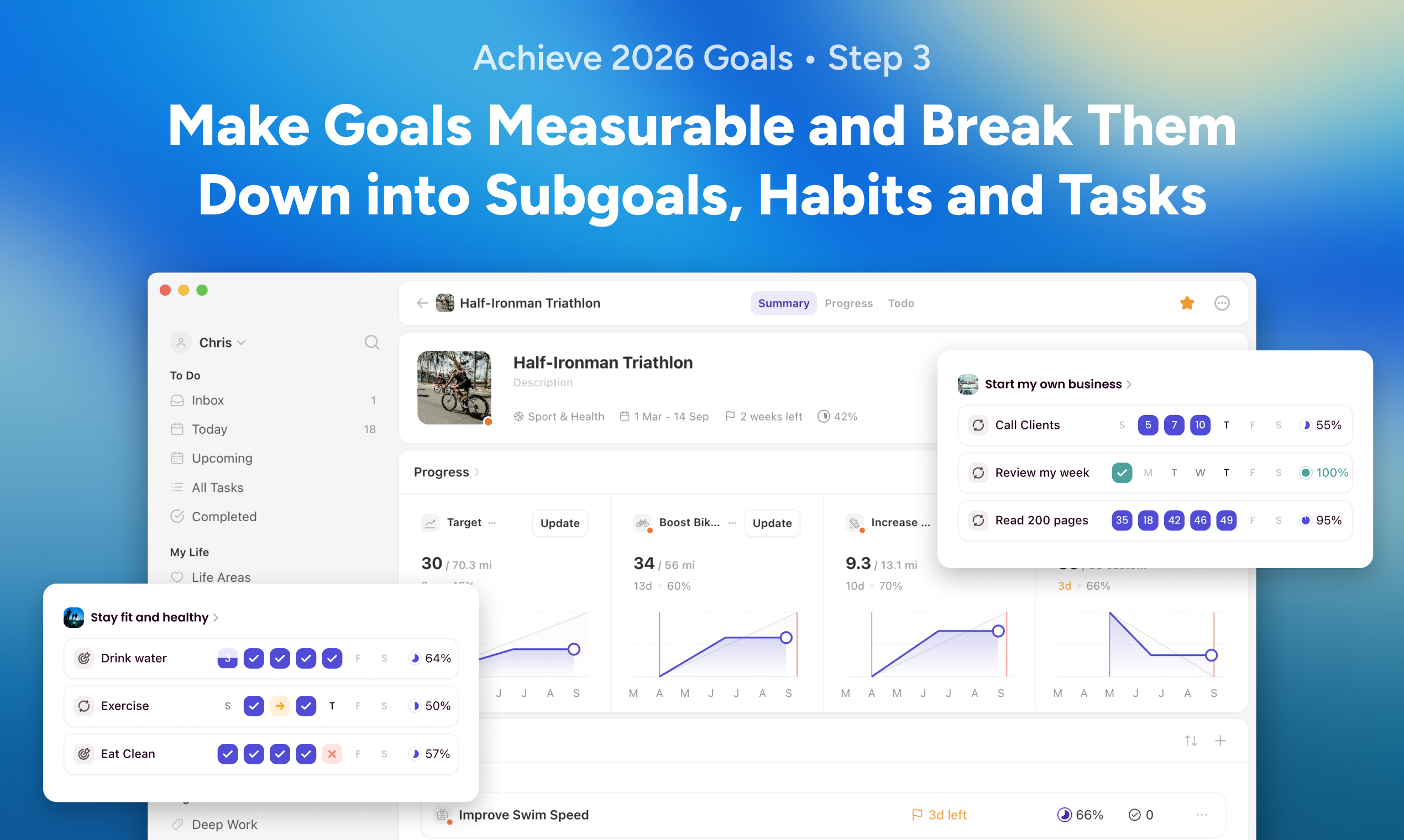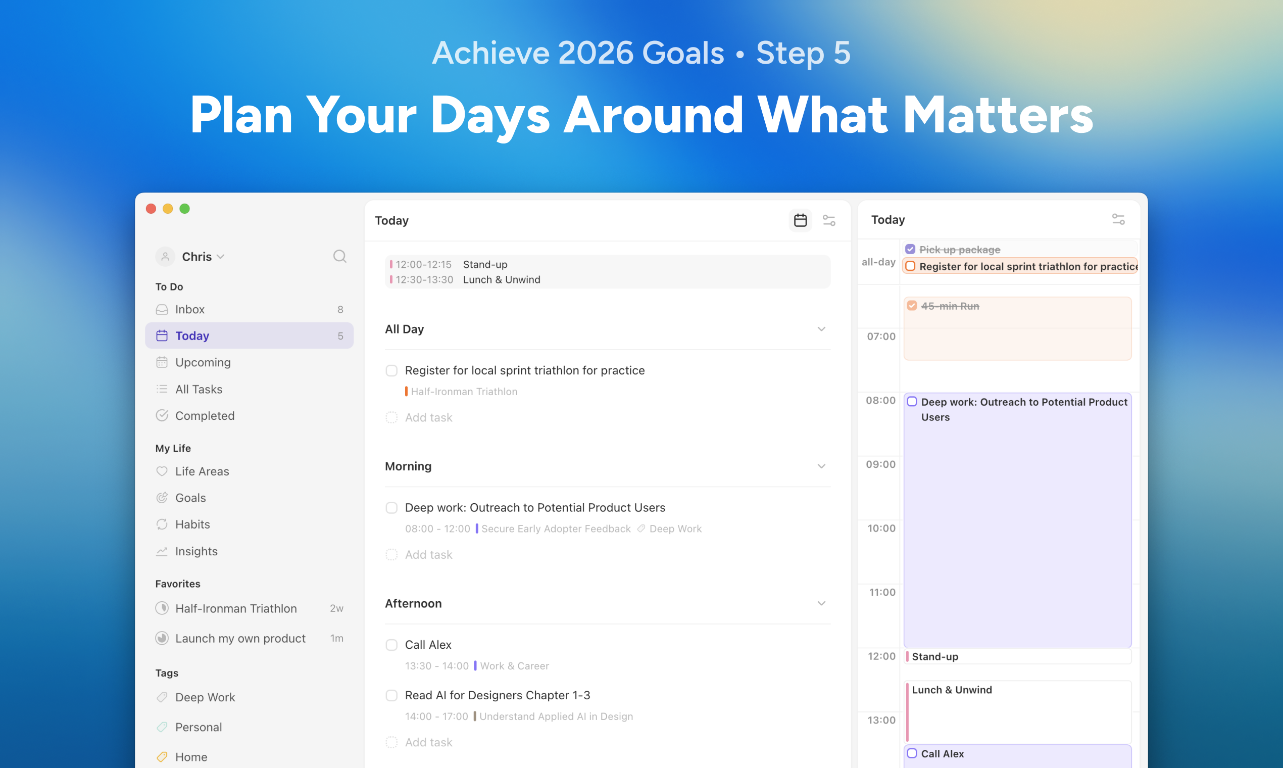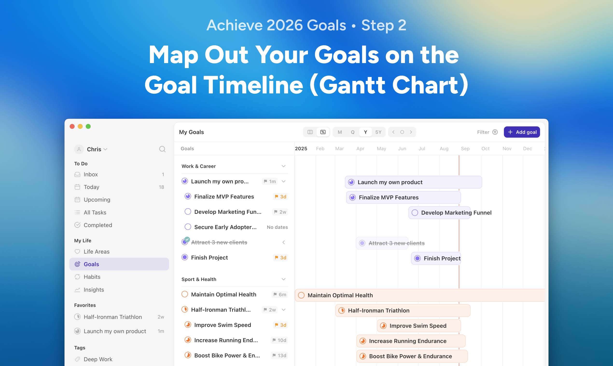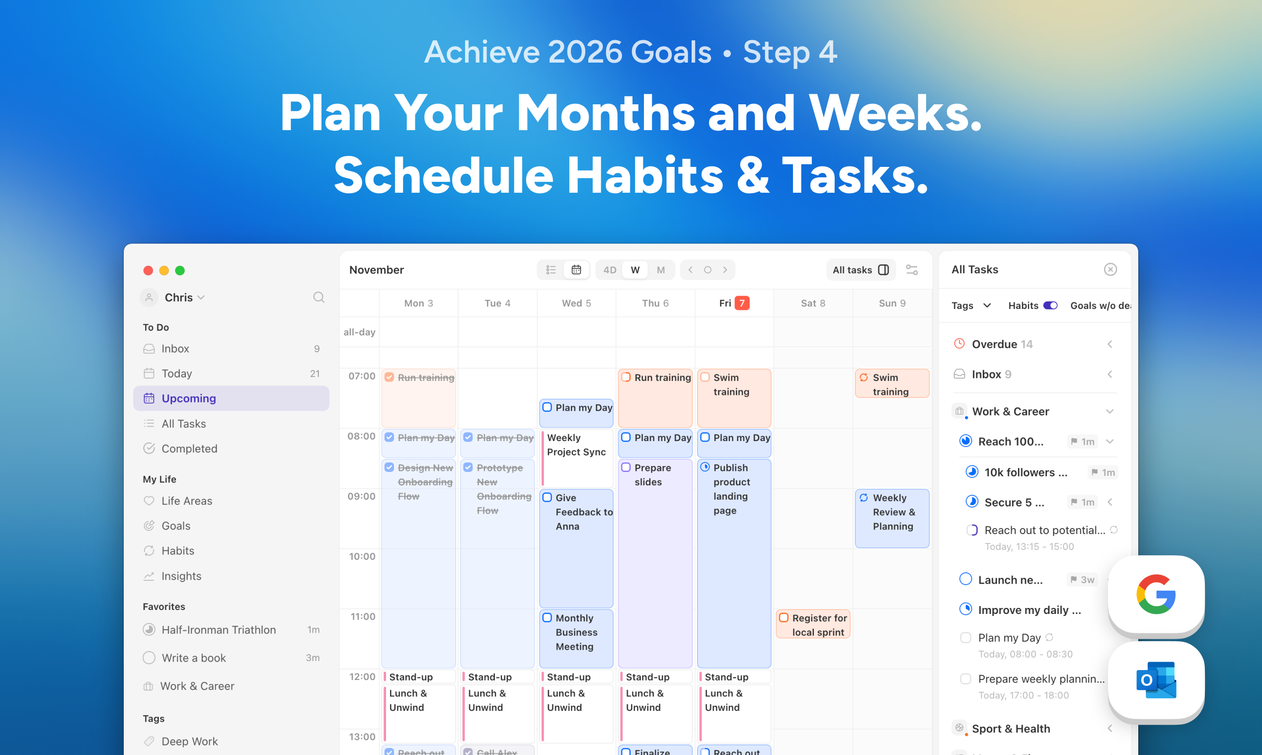 Most goals fail because they never translate into daily action. Griply is a goal-oriented task manager that connects your goals, habits, tasks, and calendar in one easy-to-use system. Plan your goals for 2026, break them down into daily actions, schedule time for what matters, and track measurable progress over time with a planner designed around outcomes, not just tasks.
