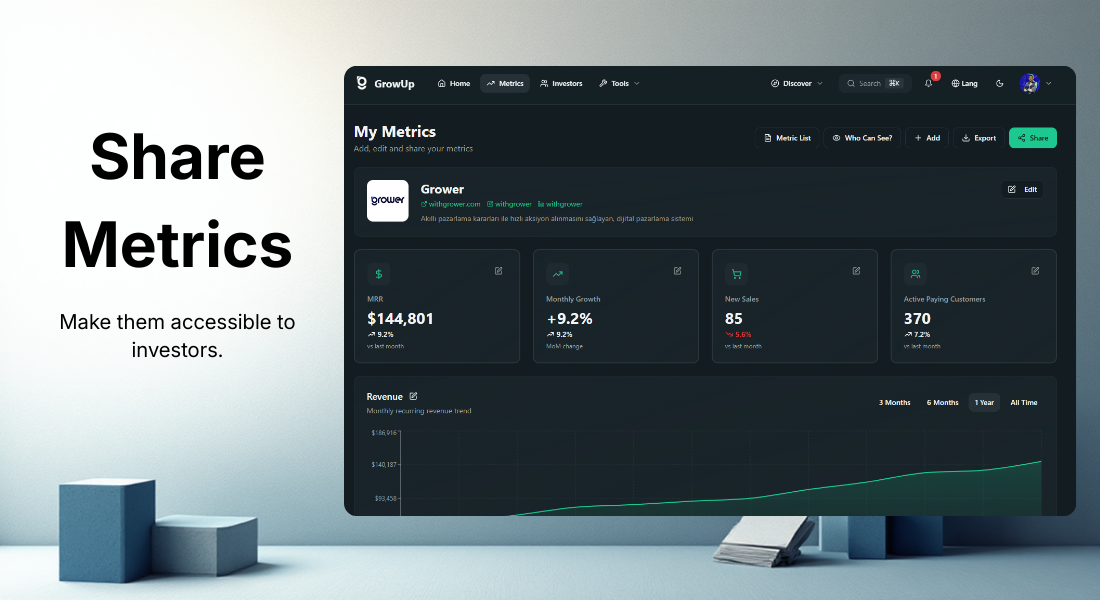 Share your startup's financial metrics and make them accessible to investors. Let investors analyze startup metrics in real-time and make informed investment decisions.