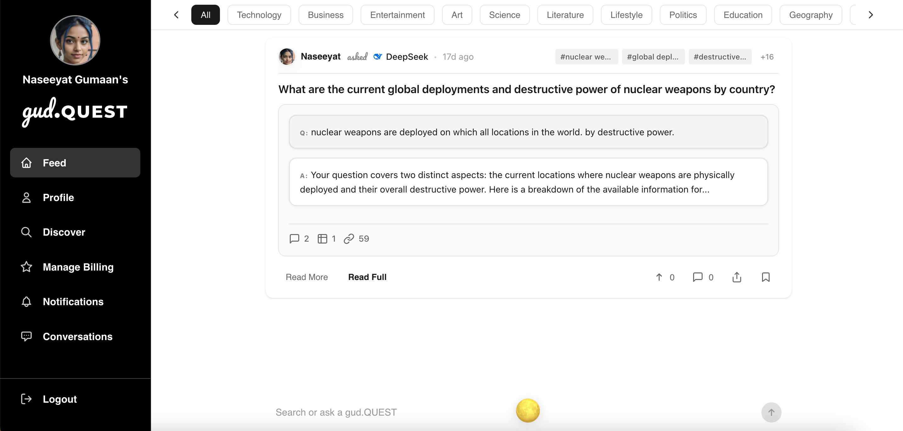GUD.QUEST - Share and discover AI conversations from ChatGPT, Claude (Anthropic), Gemini, Grok, Perplexity, DeepSeek, and Meta AI.
