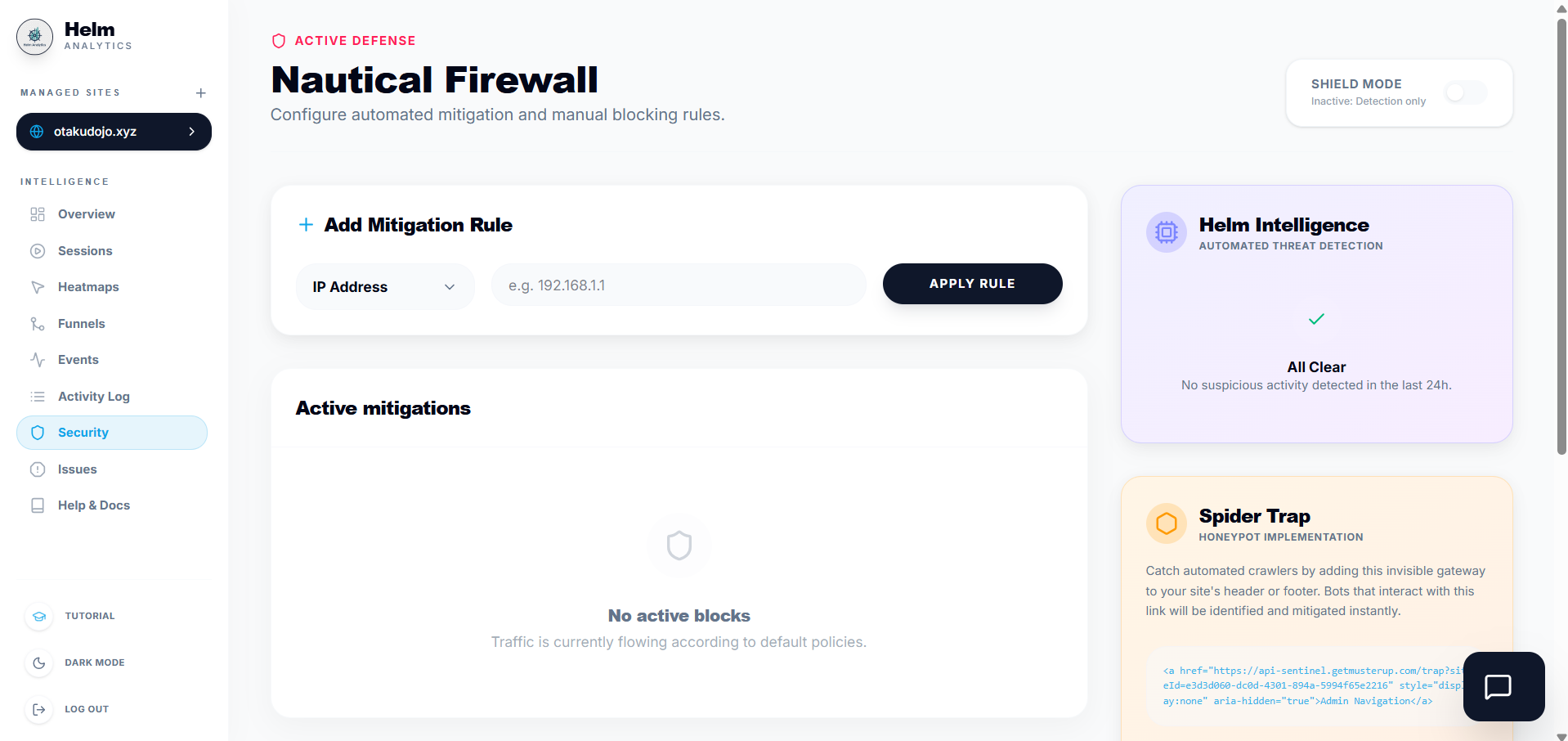 Traditional analytics stops at measuring. Helm Analytics starts there. This is a Website Intelligence platform that integrates proactive security directly into your metrics. While others just count visitors, Helm identifies bots in real-time, blocks malicious scrapers with its 'Shield' firewall, and uses AI to surface deep traffic quality anomalies. It’s not just a dashboard; it’s a tactical command center for your site’s growth and defense 100% open-source and cookie-free.