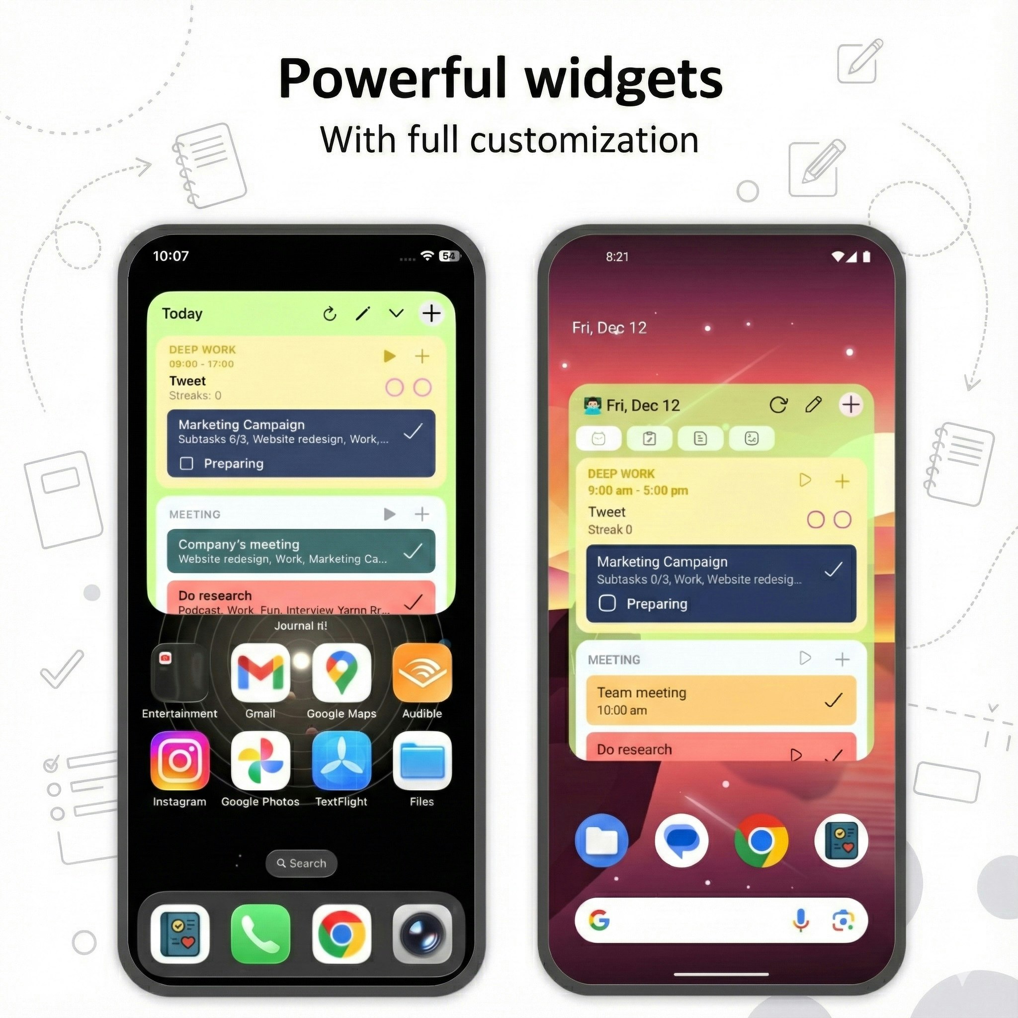 Your journal, planner, notes, habits, and goals shouldn't live in separate apps. In Journal it!, they're one interconnected system. Not features bolted together. One integrated system from day one, where planning, journaling, notes, and tracking actually work together. Available on Android, iOS, macOS, and Web. Mobile-first. Works fully offline. Optional E2E encryption. Built for individuals, not teams. Capable free version with unlimited items. Lifetime option available.