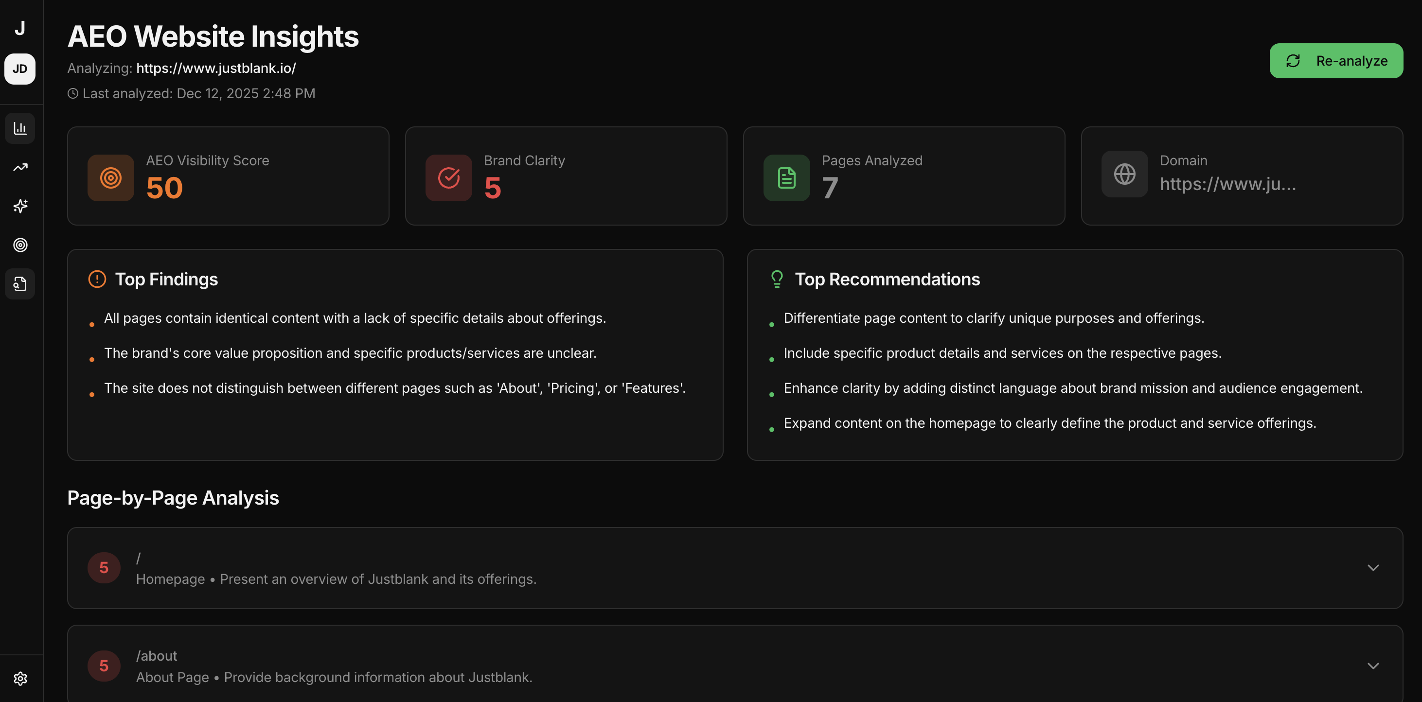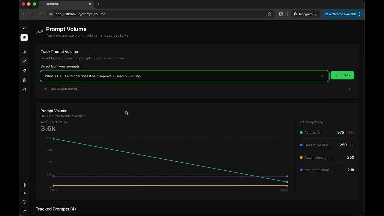 Justblank is a full-cycle AEO platform built for the AI search era. Start with free AEO analytics to see how AI engines understand and rank your brand inside AI answers. Track prompt visibility, competitor mentions, and prompt volume across leading LLMs. Turn insights into action by creating and optimizing AEO-ready content to increase visibility in AI-generated answers, all in one place.