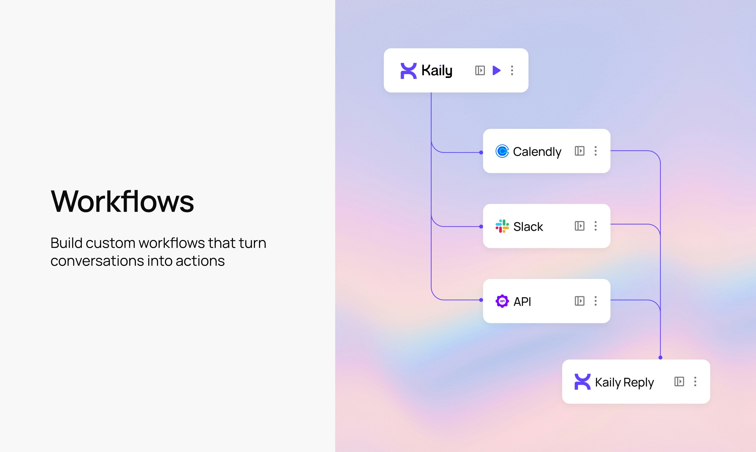 Meet Kaily, your AI teammate that automates every customer conversation. Handle support, sales, onboarding, bookings, and more across web, mobile, WhatsApp, Slack, email, voice, and video. Start in minutes with premade templates, train on your data, deploy everywhere. Operates in 90+ languages. Try free for 30 days!