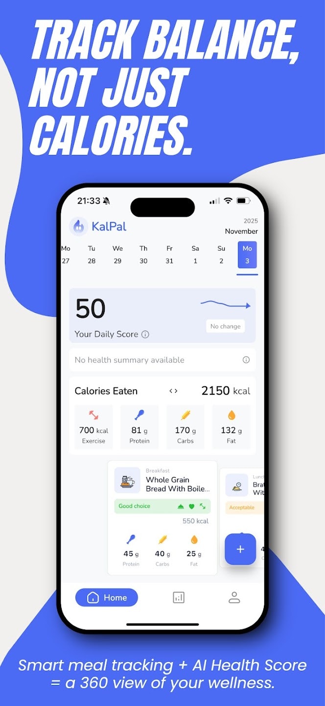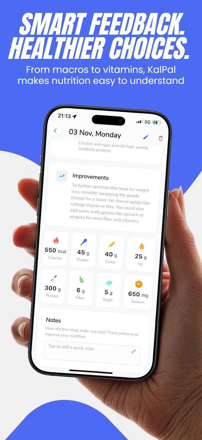 Kalpal helps you make healthier food decisions—tiny 1% improvements that add up. Track meals, get nudges, and reach your weight-loss goals.