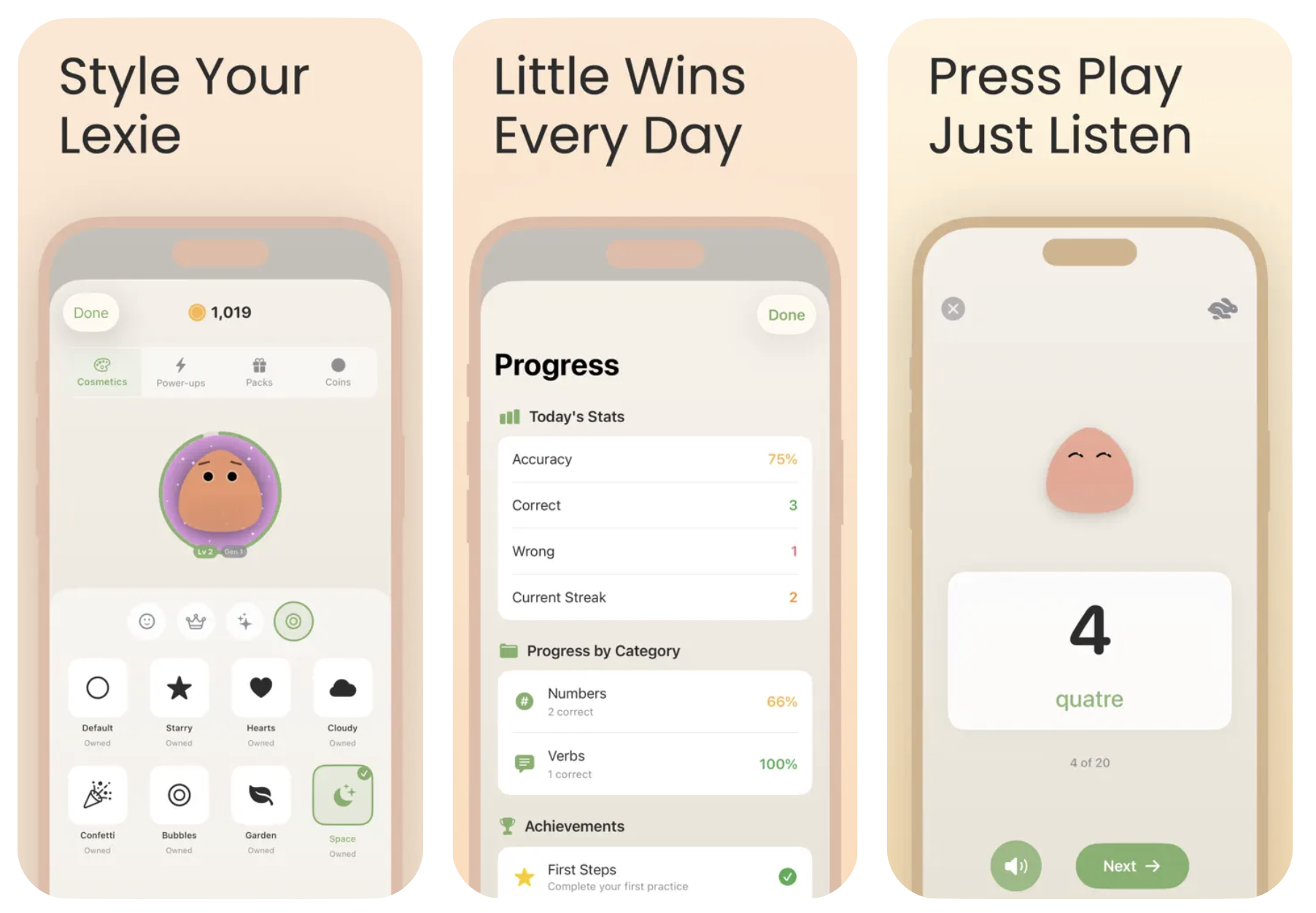 French numbers are ridiculous. Quatre-vingt-dix-neuf? That's "four-twenty-ten-nine" for 99. Meet Lexie: a tamagotchi-inspired game that makes French practice stick – especially the ridiculous bits. It grows when you practice, evolves when you’re right, and doesn’t punish you for being wrong or missing a day. Fully offline, zero ads. French is free; extra languages are a one-time unlock.