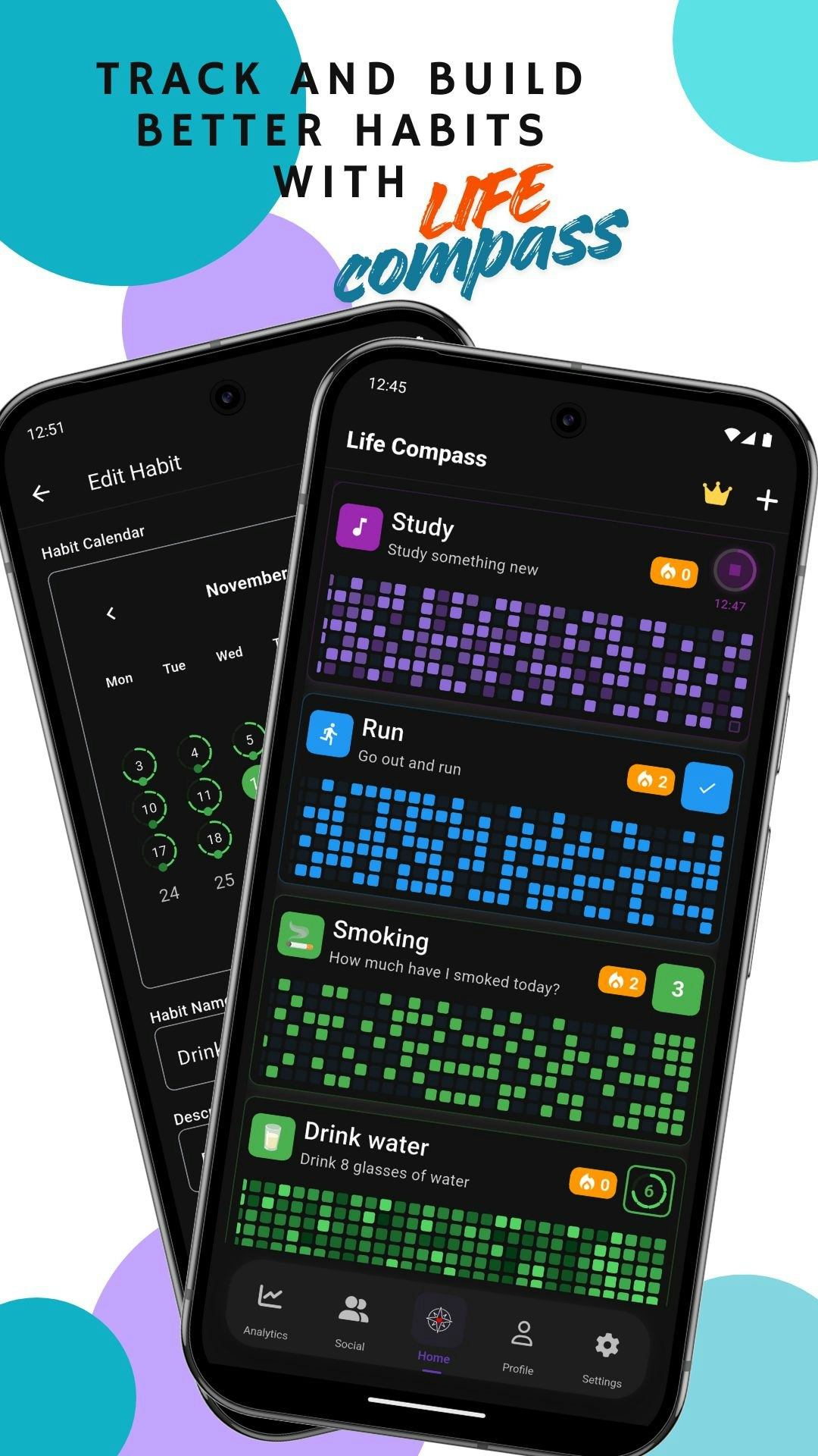 Life Compass is the bold habit & goal app that turns “I should” into “I did.” Build routines, stick to them, and stay accountable with real-time stats and a social push. What you can do with Life Compass: - Track habits & goals in one place - Stay consistent with streaks, reminders, and clean progress charts - Get real accountability from a supportive community - Keep your data safe and synced across devices Start small. Stay consistent. Achieve more with Life Compass.