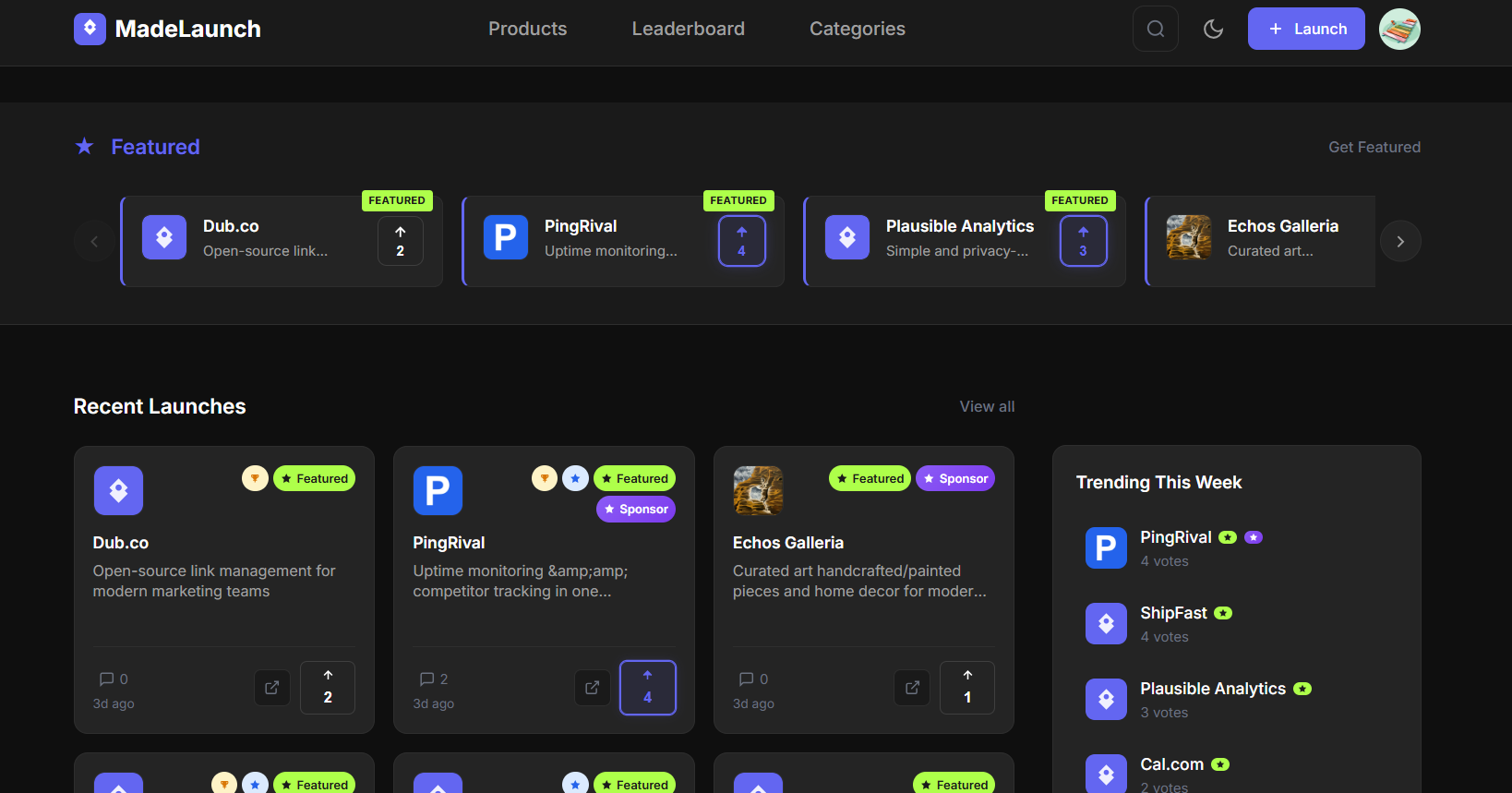 MadeLaunch is a community driven platform where makers launch products and get real feedback from early adopters.