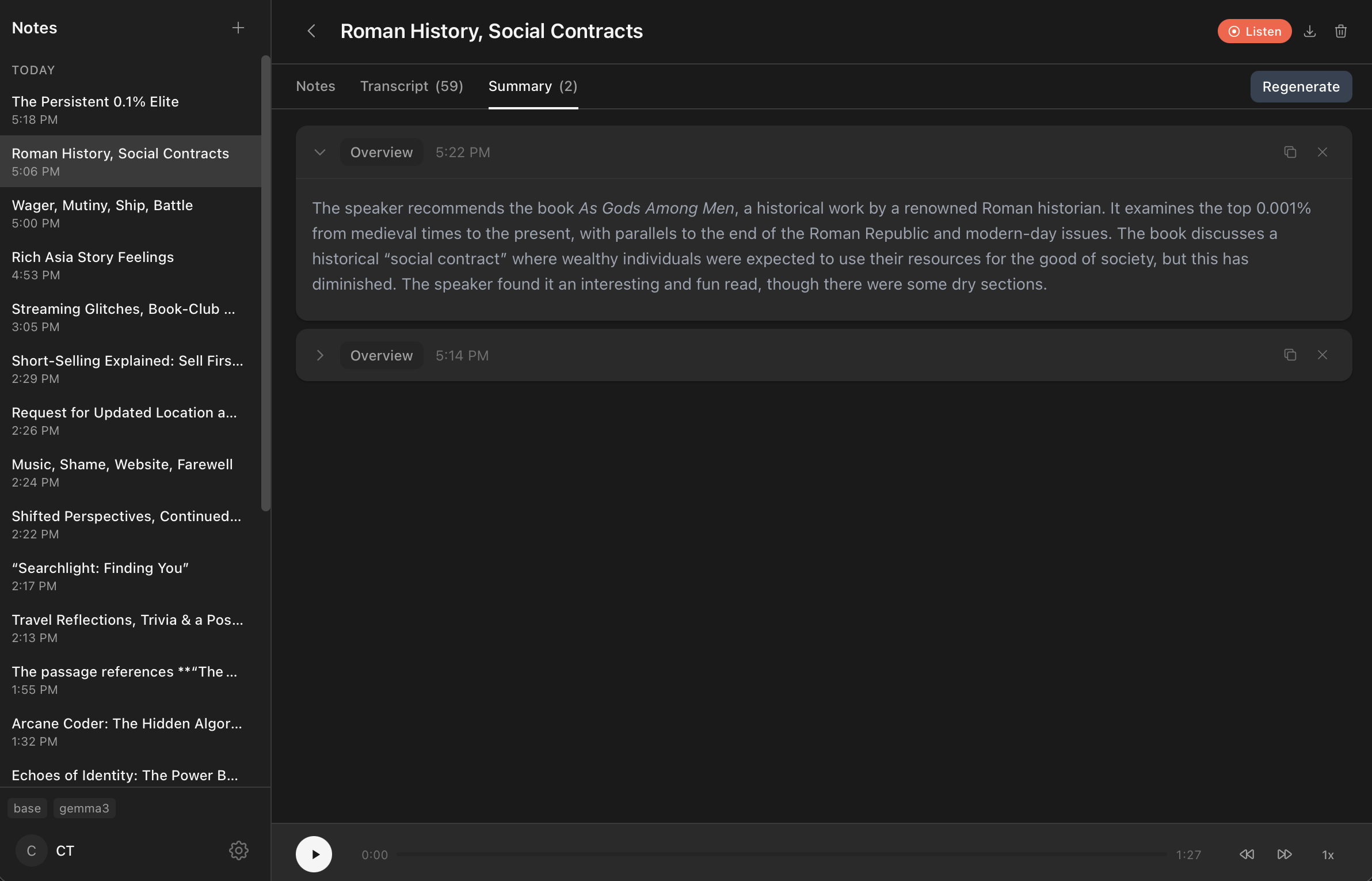 Capture audio, transcribe locally with Whisper, and generate AI-powered summaries. All on your device. No cloud. No data leaves your machine. 100% Local Processing: Powered by on-device Whisper models, ensuring your audio and transcripts remain completely private. Private AI Summaries: Uses Ollama to generate meeting minutes, action items, and summaries without sending data to third-party AI APIs. Real-Time Transcription: Watch transcripts appear live during your calls.