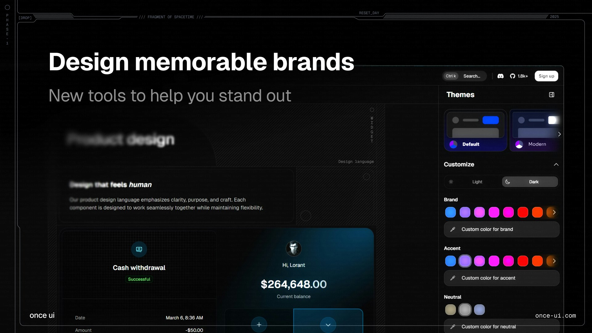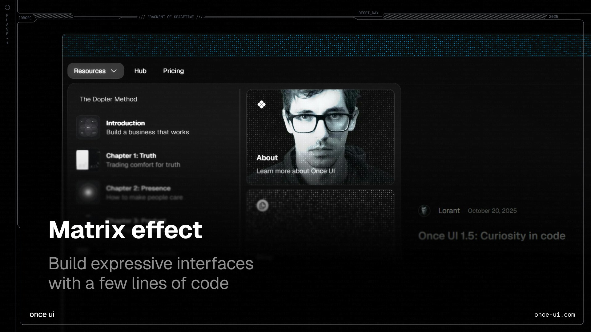 Once UI 1.5 is about bringing wonder back to UI engineering. We’re introducing new visual effects — weather, particles, matrix-style dots — all drop-in and usable in just a few lines of code. You also get a new generation of chart types built for live data and real-time dashboards. Only in Once UI. A toolkit for indie builders who want their product to feel alive, expressive, and unmistakably theirs.