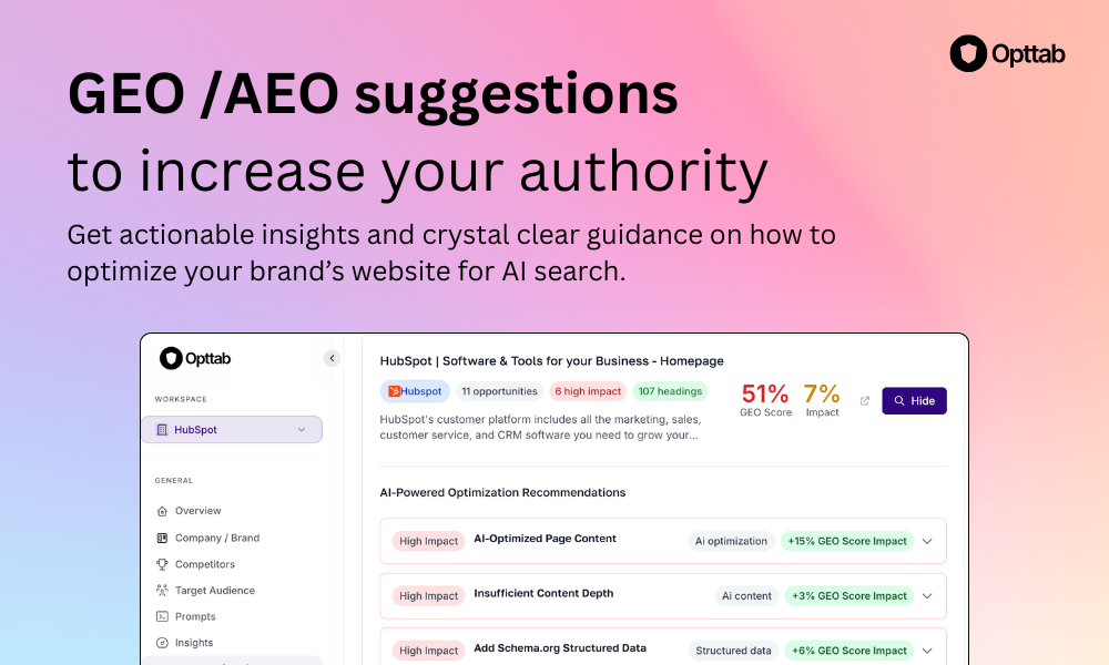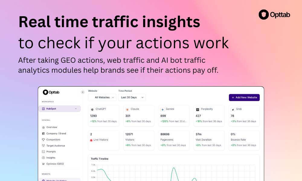 Opttab is an all-in-one AI visibility and GEO (Generative Engine Optimization) platform designed to help brands, individuals, and businesses measure, control, and grow their presence across AI-powered search engines and LLMs such as ChatGPT, Gemini, Claude, Perplexity and other AI models. Unlike traditional SEO tools, Opttab focuses on how AI models discover, interpret, rank, and reuse your content—giving you full transparency and control over your AI-facing digital footprint.