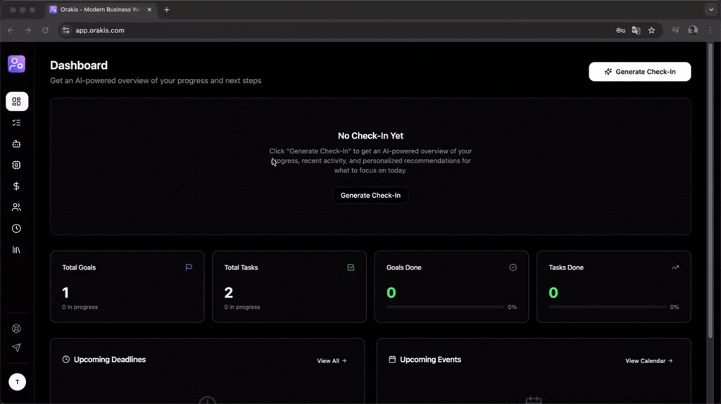 Don't waste your time on ops instead of building. Orakis is the AI that handles the rest. It knows your goals, finances, contacts, and context. Ask it anything, delegate tasks, get daily briefings. Like having a COO without the $200k salary.