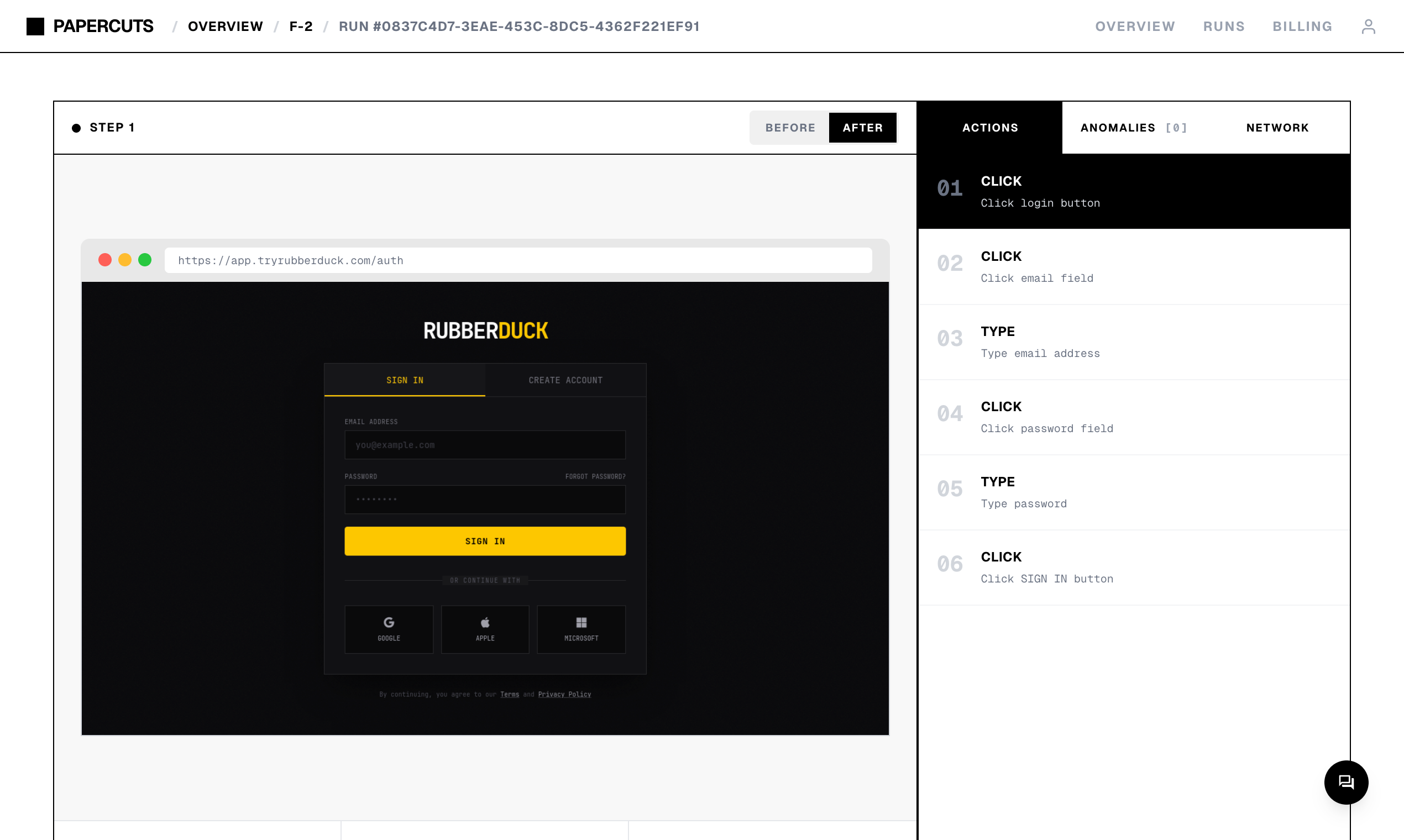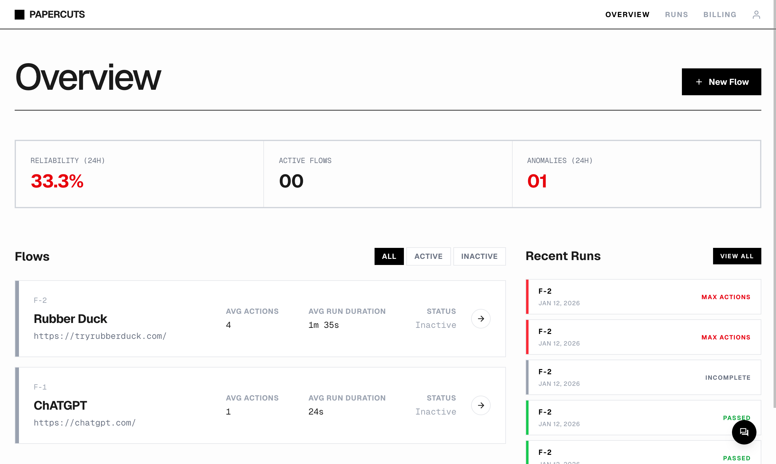 Deploy AI agents that flow through your production app like a real user. Just provide a URL and get notified when something breaks.