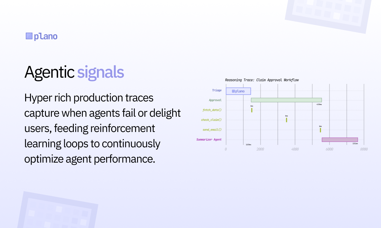 Plano is delivery infrastructure for agentic apps. An AI-native proxy and dataplane that centralizes functionality that shouldn’t be bespoke in every codebase. For e.g. agent routing & orchestration, guardrail hooks, learning signals/traces, and smart routing APIs across LLMs. Use any AI framework, and ship agents to production faster. With Plano, developers stay focused on core product logic of agents. Product teams learn faster, and engineering teams standardize policies across agents.