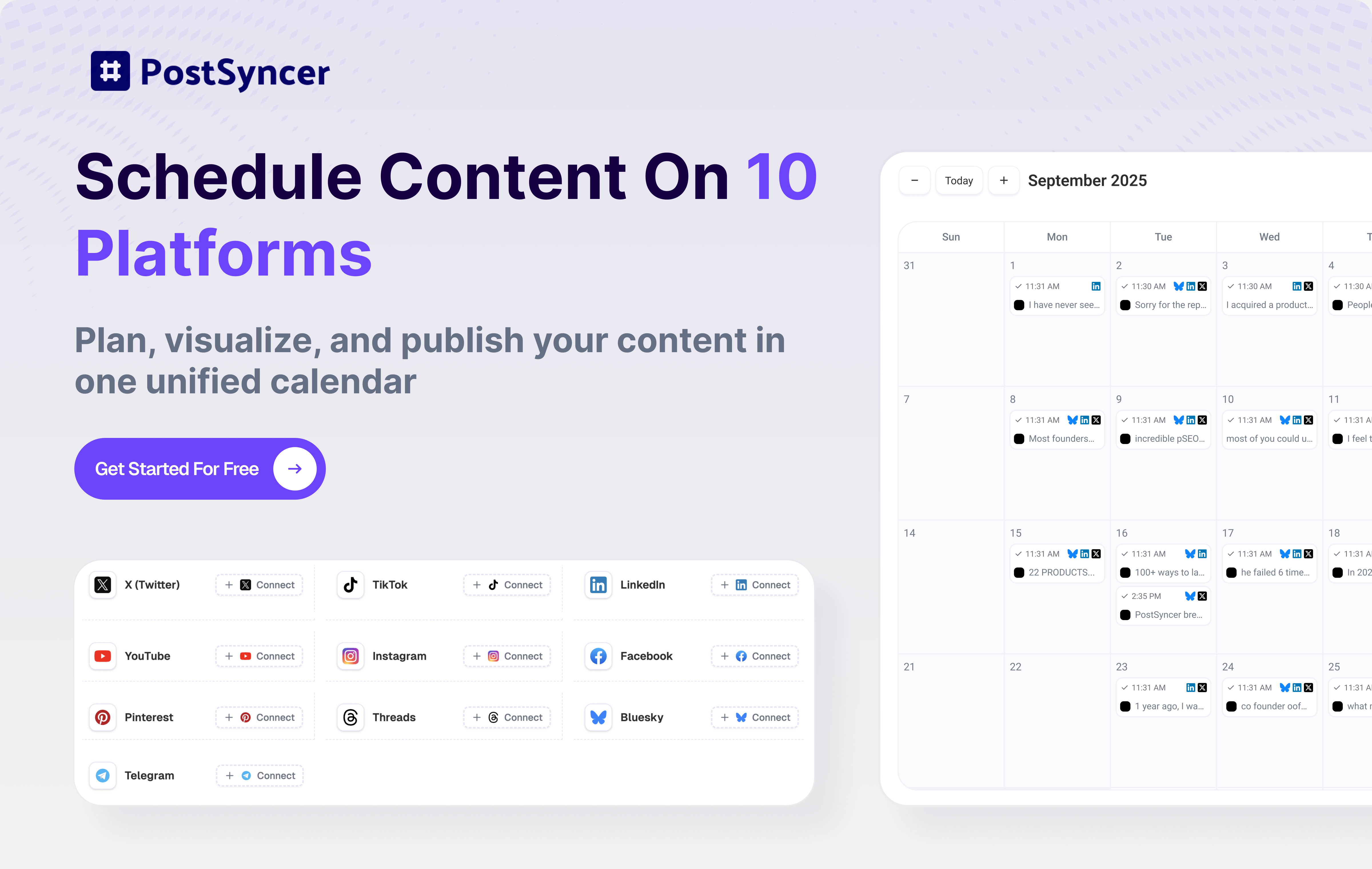The most powerful tool to manage all your social accounts at scale. Create, schedule, and reply across 10+ platforms. Get inspiration from the viral content library, generate media with AI (Sora, Veo & more), connect unlimited accounts and manage clients in dedicated workspaces.