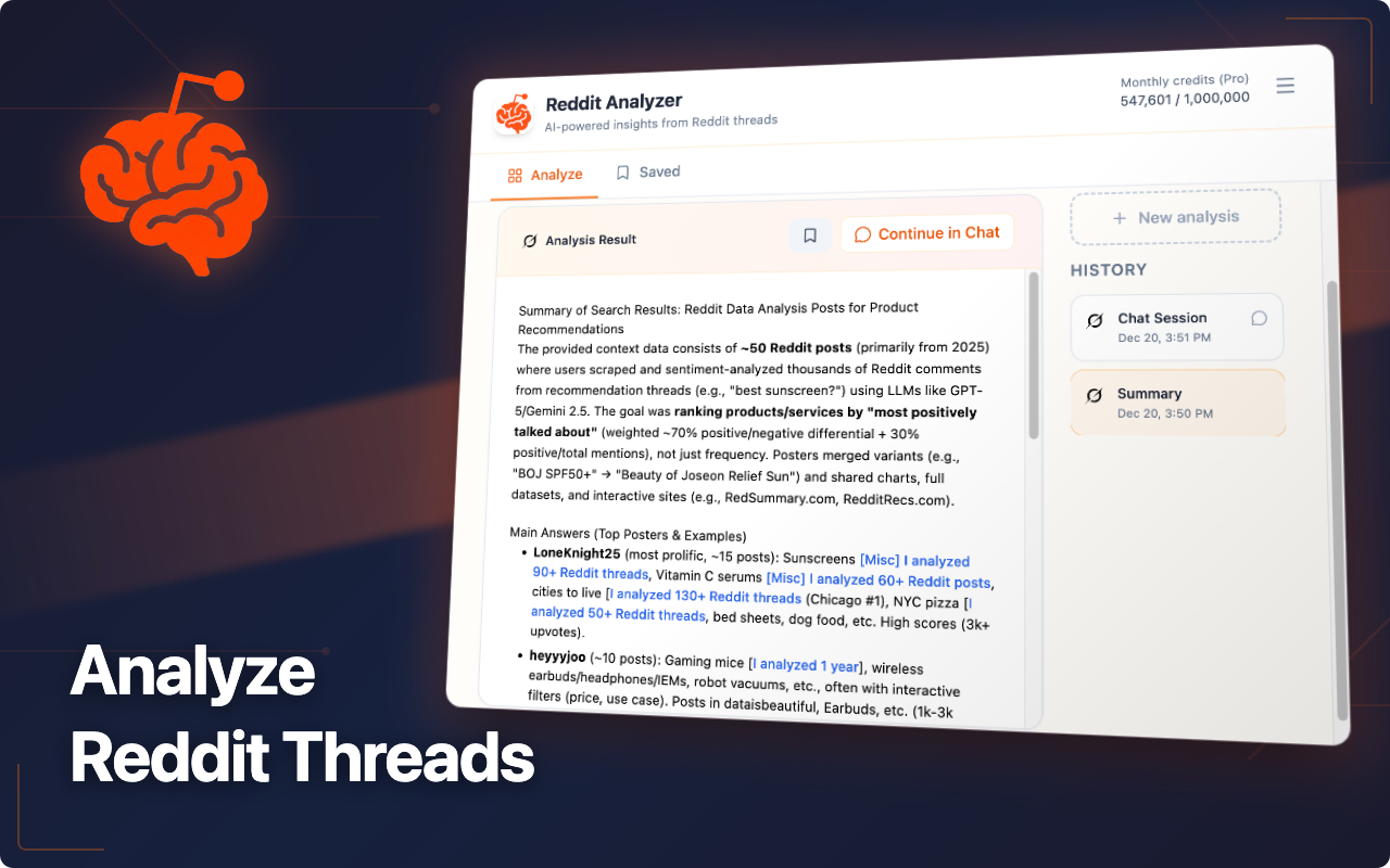Some long reddit threads are a gold mine. But you need to dig deep in hundreds or thousands of comments to form the conclusion. To simplify that I automated it all in form of chrome extension with customization to fit your own needs. With one click it: - fetches metadata (with all comments) - cleans it - sends it to selected AI - gold, you are looking for Supported pages: - Threads - Subreddits - Search results
