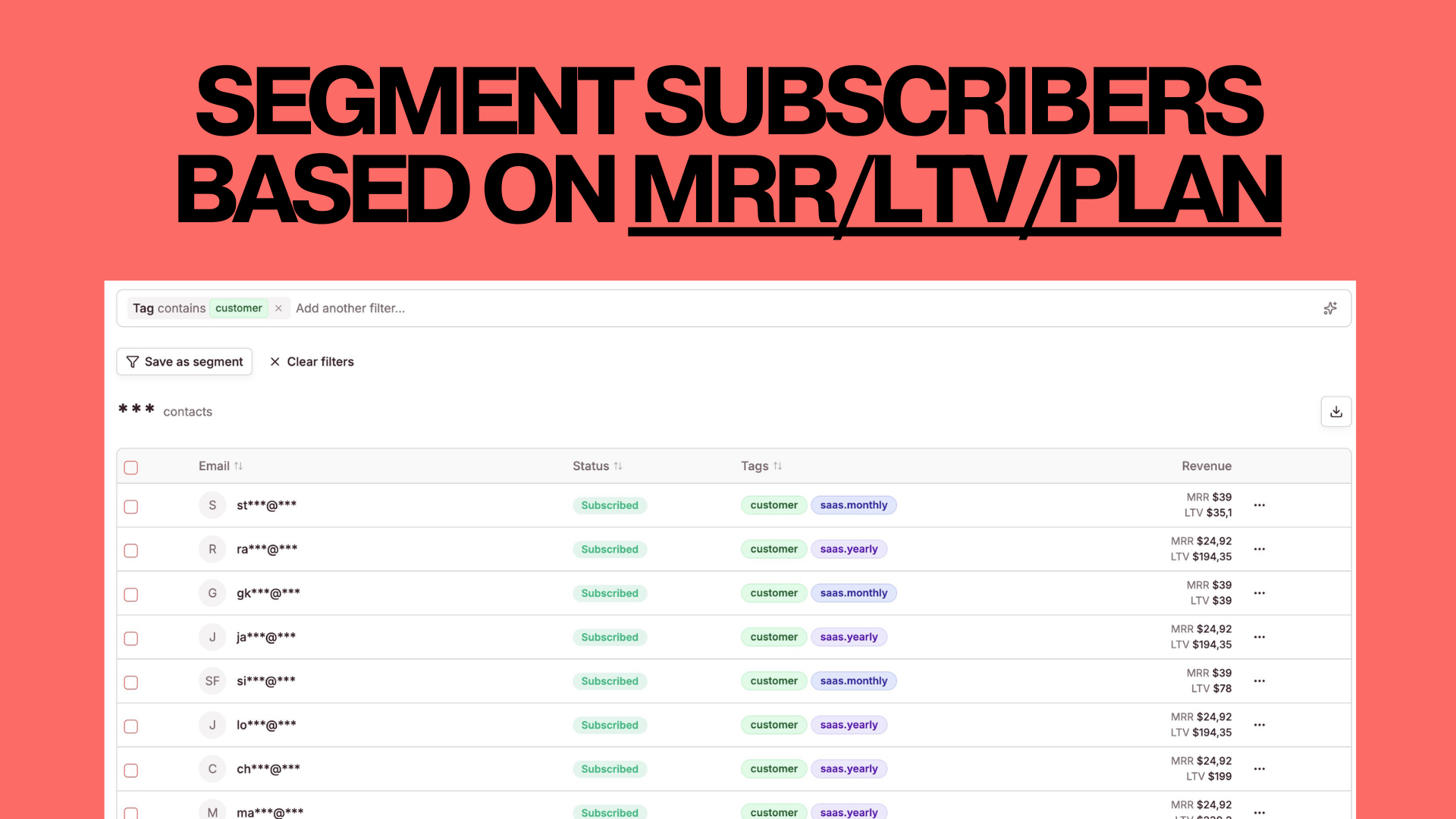 Email Marketing Platform for SaaS founders Create new on-brand sequences/email campaigns in minutes Draft new A/B tests with AI Sync stripe & segment users by mrr/ltv And much much more!