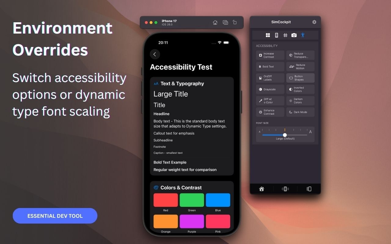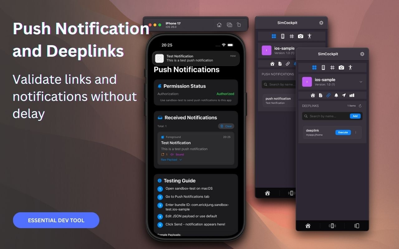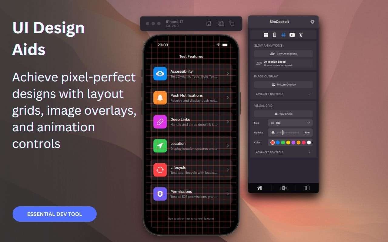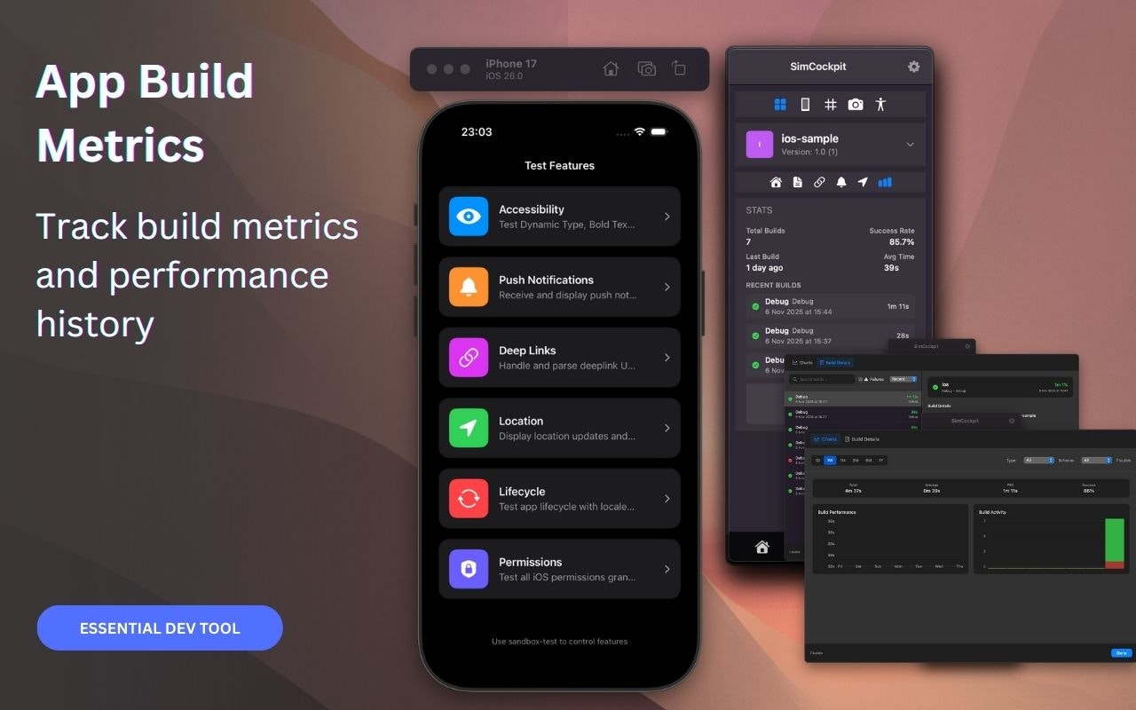 SimCockpit is the native control center for your Xcode Simulator. We built it to replace the friction of terminal commands and scattered tools with a single floating window. Toggle network conditions, mock GPS locations, edit User Defaults, and record demos without breaking your flow. It is the missing companion designed to let you focus on building great apps, not managing your environment.