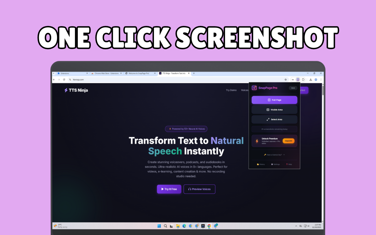 SnapPage Pro is a powerful Chrome extension that lets you capture full-page screenshots, annotate, blur sensitive data, add frames, and export in multiple formats — all locally with a privacy-first approach. 🎁 New Year Special: Use coupon SNAPPAGENEWYEAR to get the Yearly Plan 100% FREE (valid for 30 days).