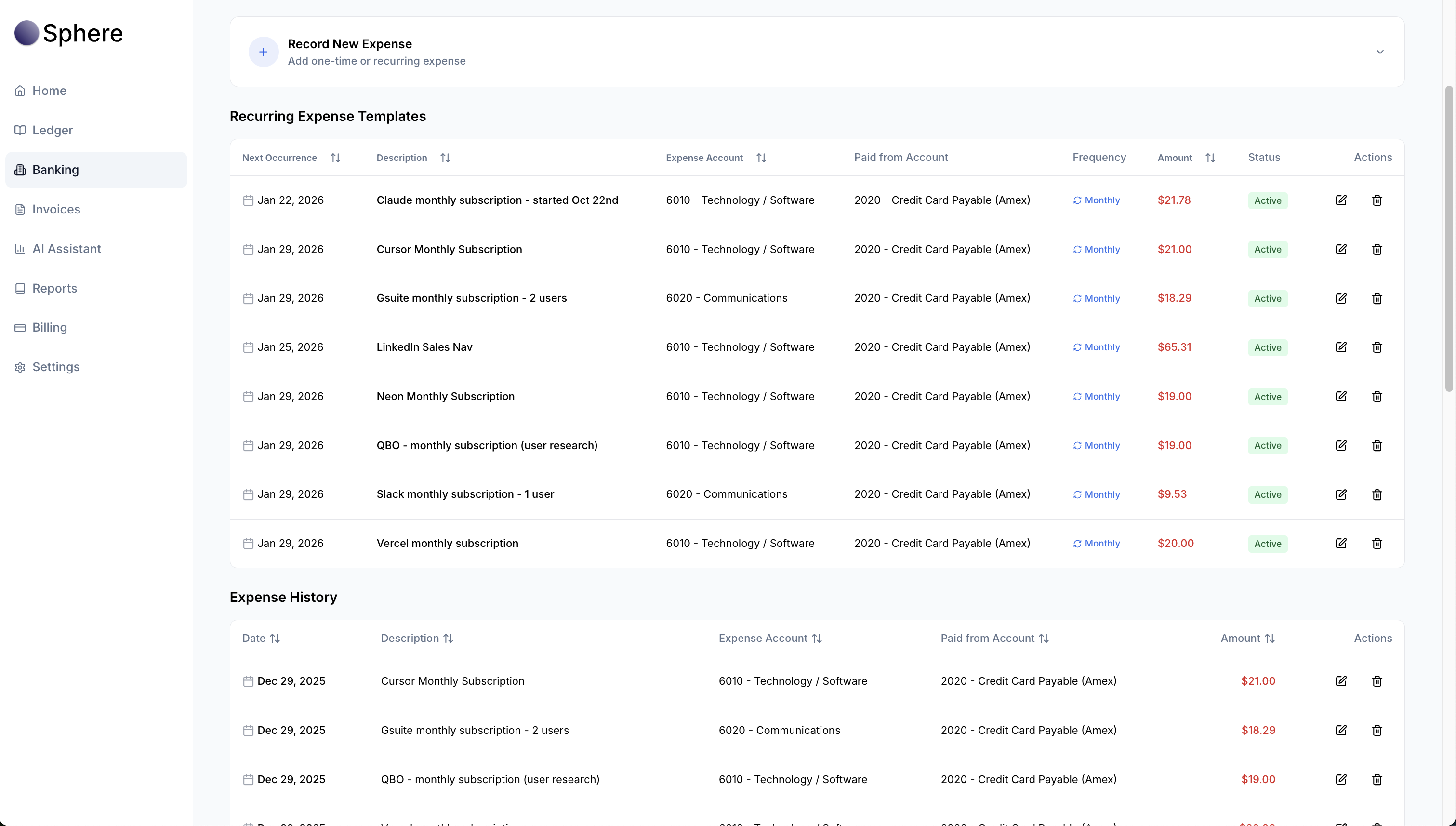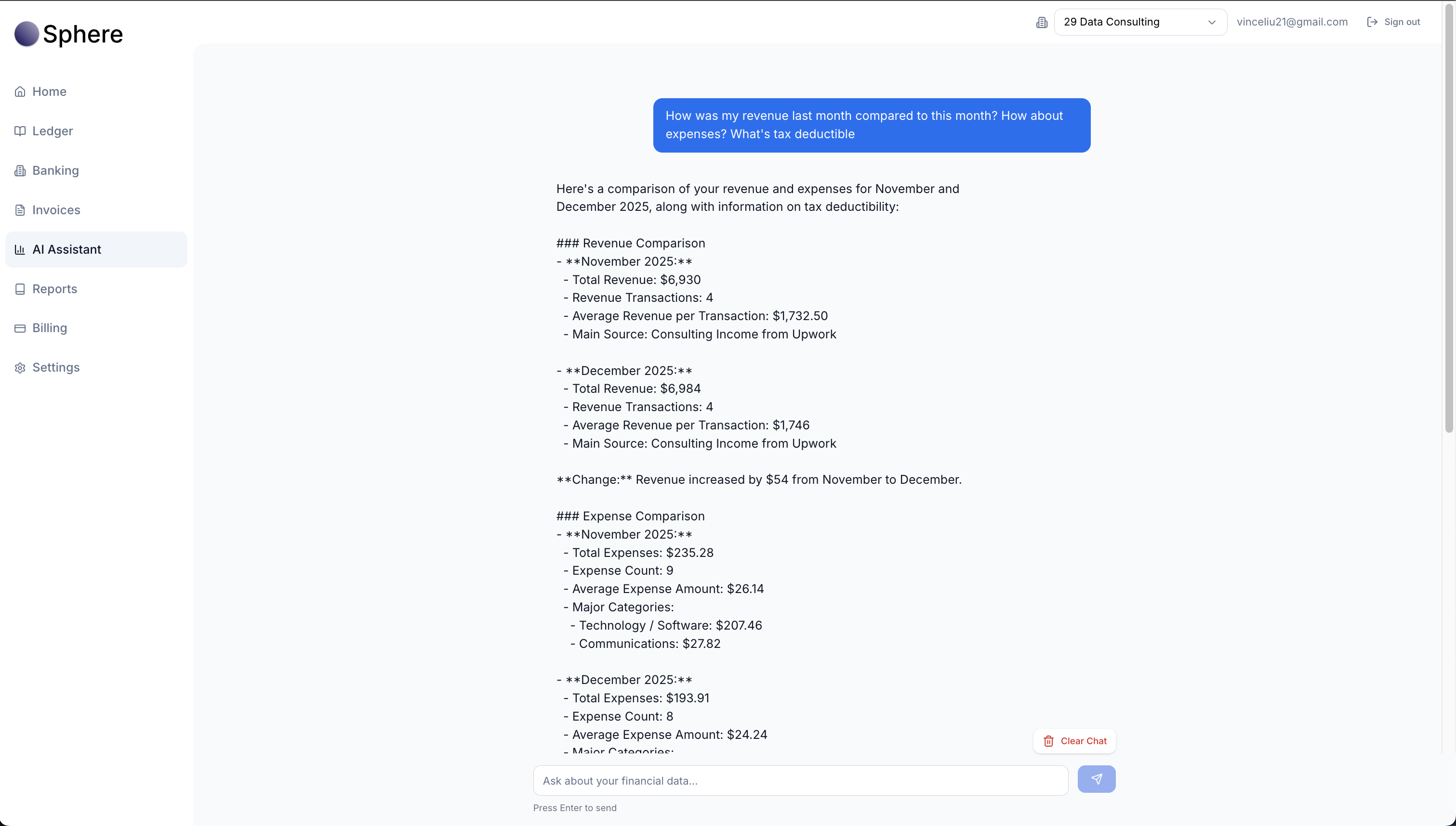 AI-Native Accounting, Bookkeeping, and Financial Management Software. Sphere is a modern alternative to QuickBooks, Xero, and similar tools designed for consultants, freelancers, small businesses, and accountants/bookkeepers. We're a bookkeeping/financial tool built from scratch with a GPT-like assistant built on top with further feature development to help make all things accounting, bookkeeping, and financial business item/management related easier.