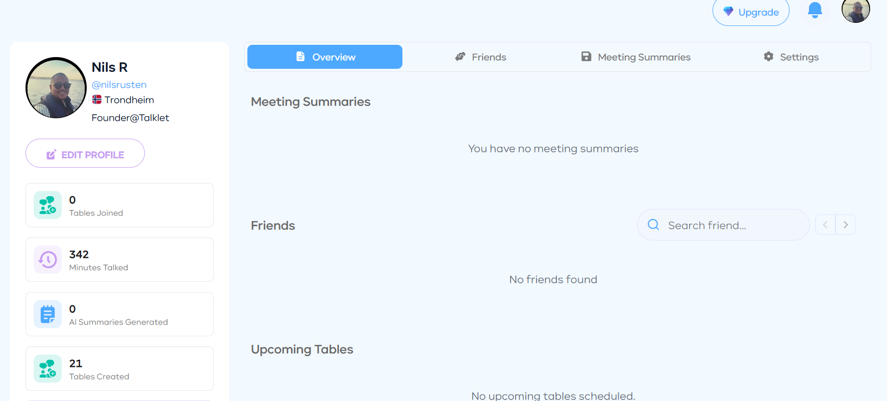 Talklet is a platform for small, topic-based conversations designed for depth, not noise. You create or join focused tables with 2–6 participants around a shared topic and talk live with people who actually want the same conversation. No feeds, no chaos — just real dialogue. After each session, Talklet generates a concise AI-powered summary so insights don’t disappear when the conversation ends.